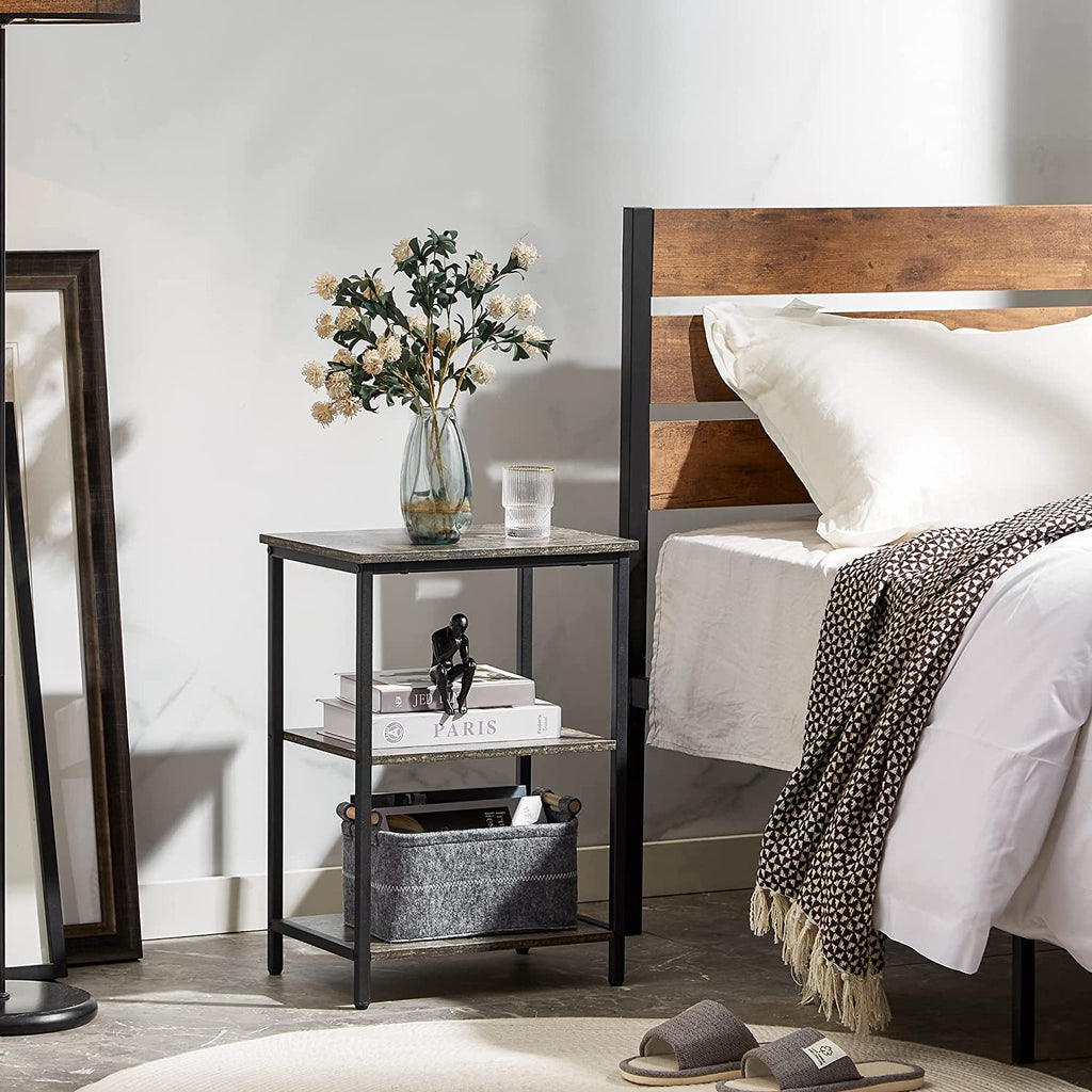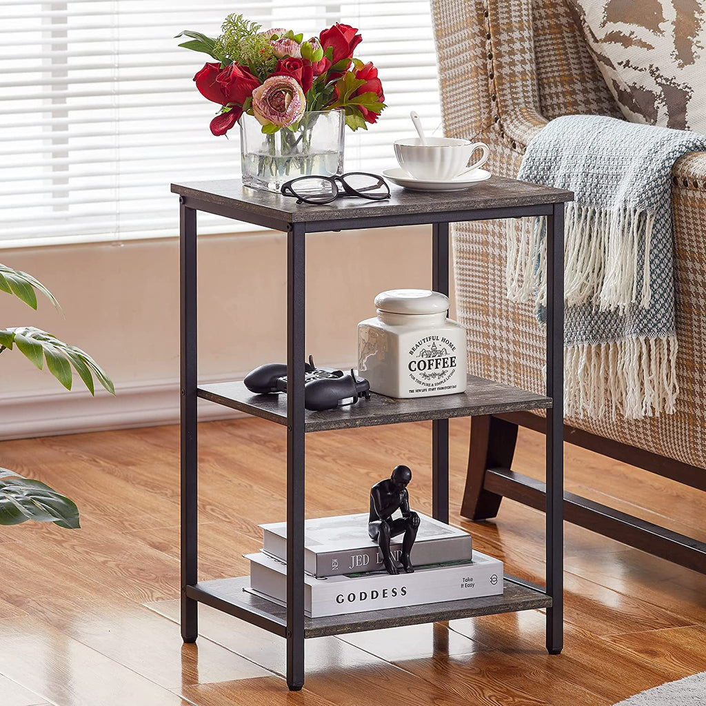 VECELO End Side Table with Storage Shelves Industrial Night Stand, 3-Tier Slim Nightstand for Living Room, Bedroom