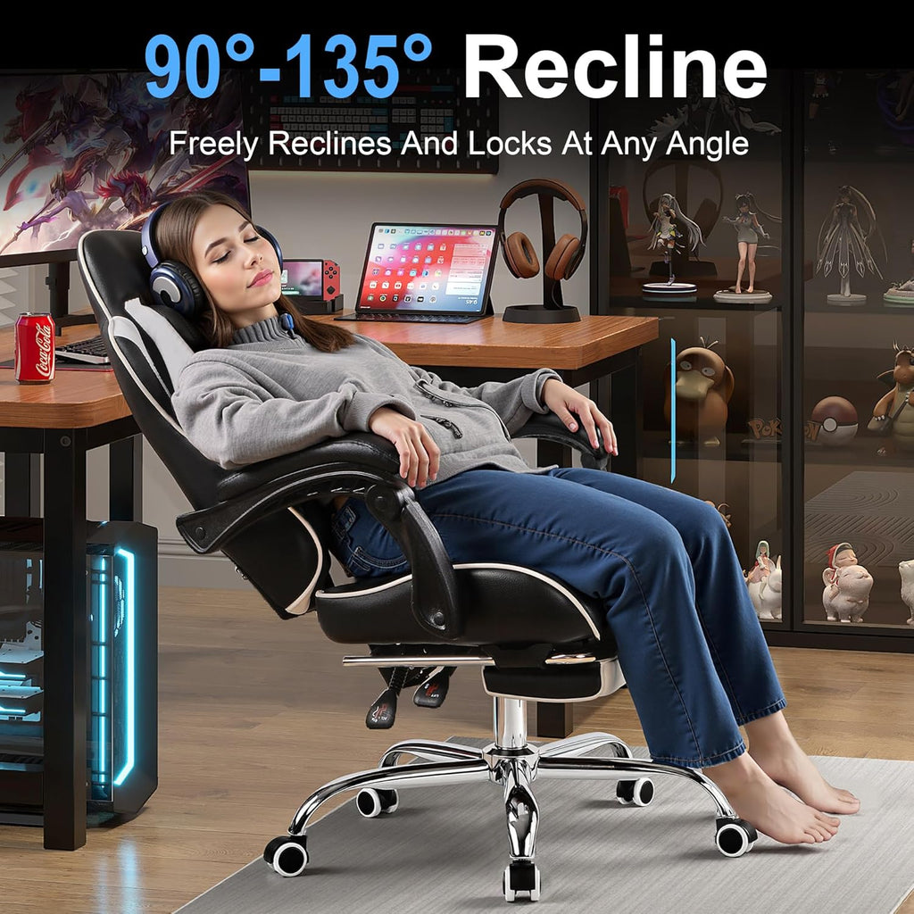 • Multi-Position Recline: This game chair adjust seat height (18.11–22.05"), backrest angle (90°–135°), lock into perfect position. Whether gaming, working, or relaxing, the gaming chairs for adults adapt to your needs instantly