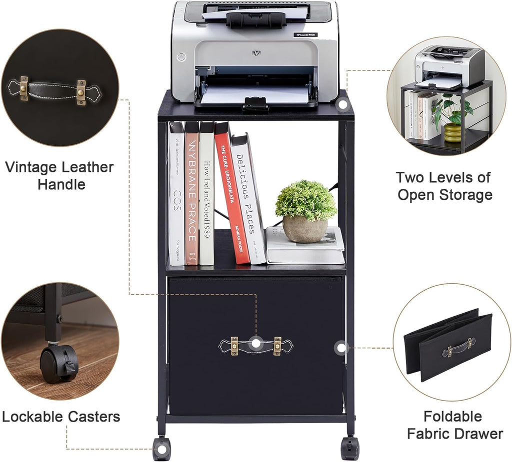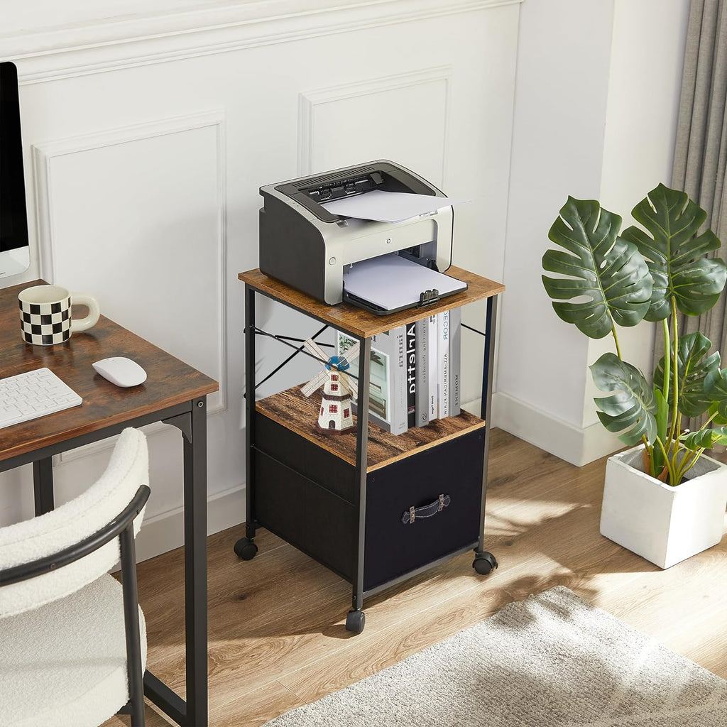 VECELO File Cabinet with Open Storage Shelf, Rolling Printer Stand with Large Fabric Drawer