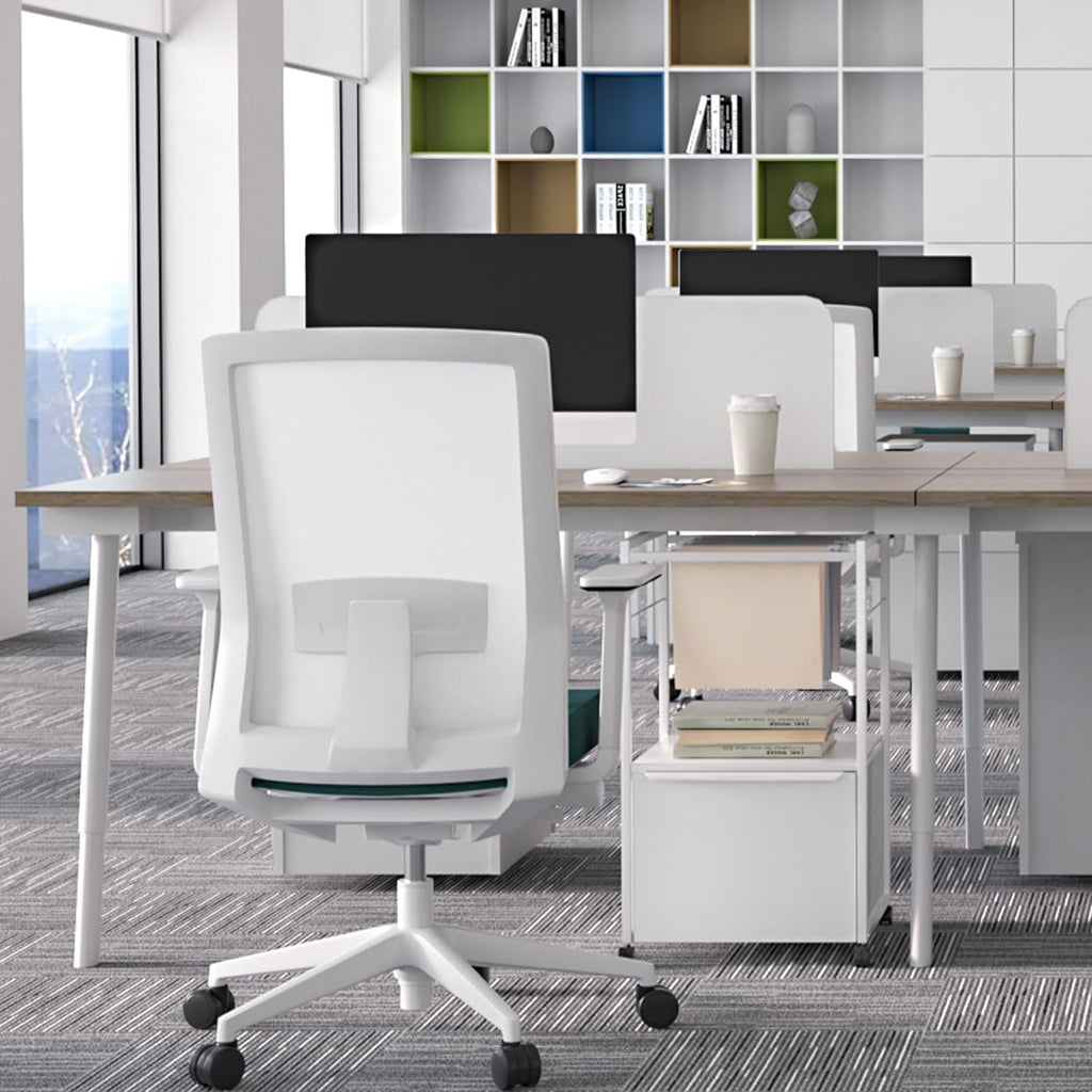 • 【Roll it Where You Want it】Under your desk, next to your desk, tucked in a corner, or wherever makes sense for you. With a height of 26.77", it fits nicely into low clearance spaces. Four 360° casters and one support caster are included. Once you locate it in the sweet spot, simply lock the front 2 casters to keep it securely in place.