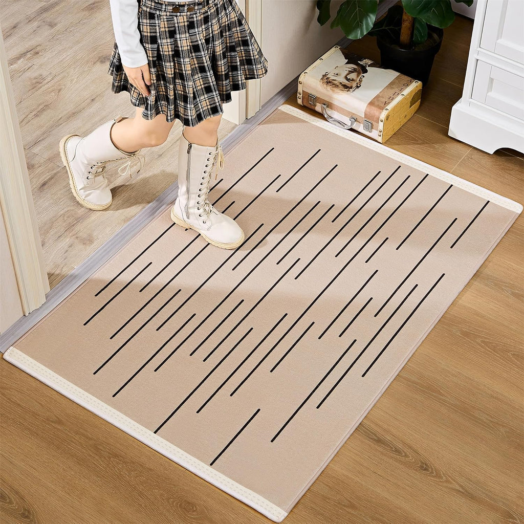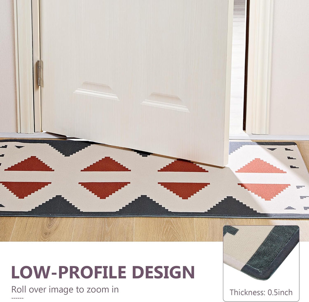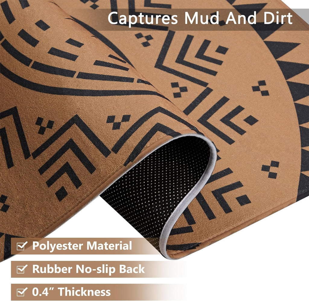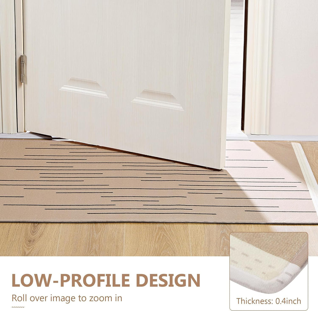 • Non-Slip Rubber Backing: The natural rubber backing provides moisture resistance, durability, and anti-slip protection to safeguard you and your floors. It keeps the door mat indoor entrance in place and reduces the risk of slipping, making it safer and more comfortable. Ensure the floor is dry before use to prevent falls. Additionally, the small outdoor rug's thickness allows it to slide under most doors without blocking or curling.