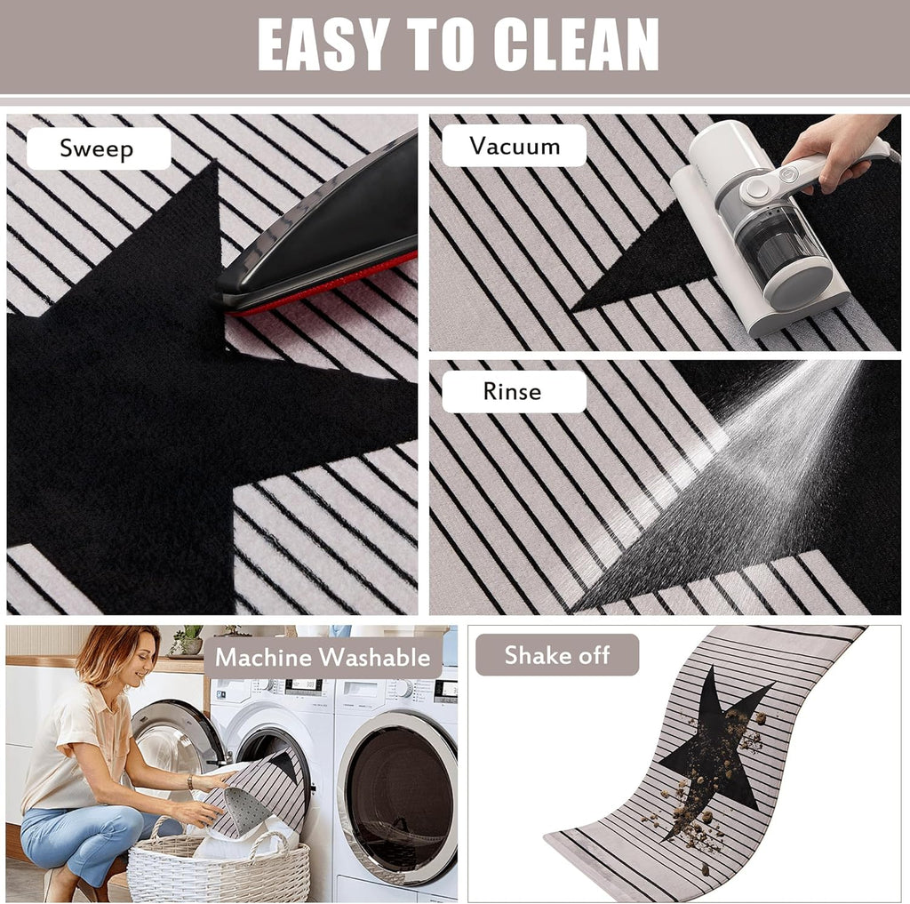 • Easy to Clean: The doormat outdoor entrance can be quickly cleaned with a vacuum cleaner or a traditional broom. Additionally, shaking or tapping the mat effectively removes residue and debris. For deeper cleaning, rinse with a garden hose or wash in a washing machine, then hang to dry. If the front porch rug has creases upon arrival, place a wet towel on the crease and gently iron it out.