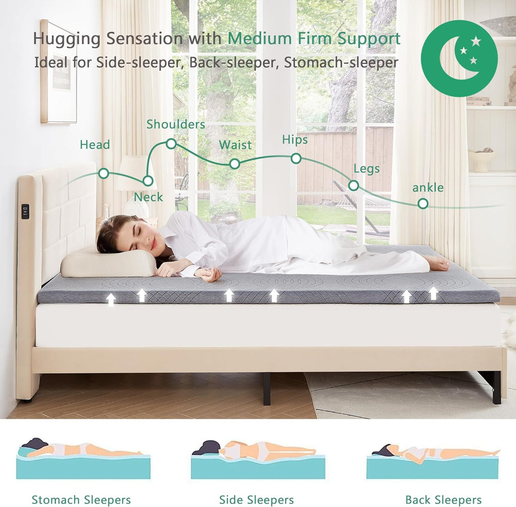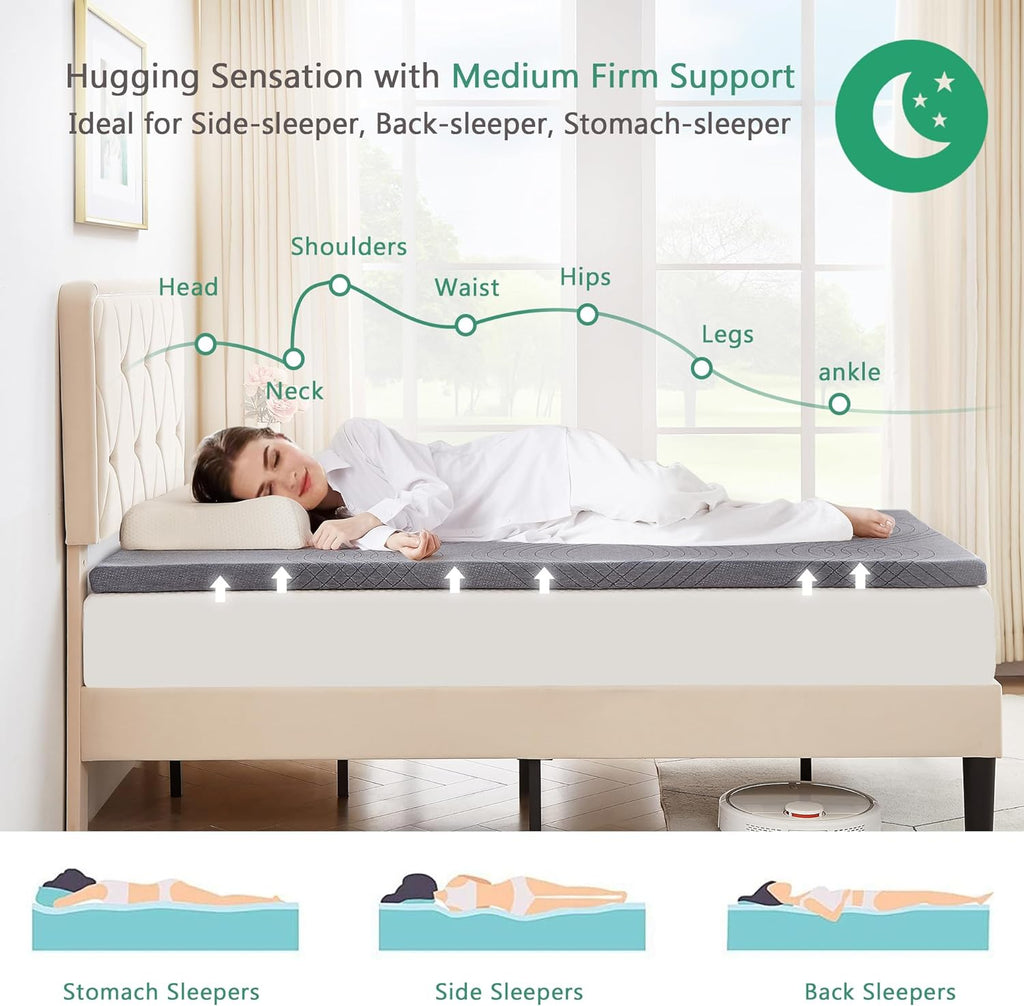 • Stay Cool & Supported: VECELO cooling mattress topper features a dual-layer composed of gel memory foam and support foam, providing balanced and independent support while absorb excess heat, enhance sleep experience, good for relieving back pain, hip pain and keep you cooling.