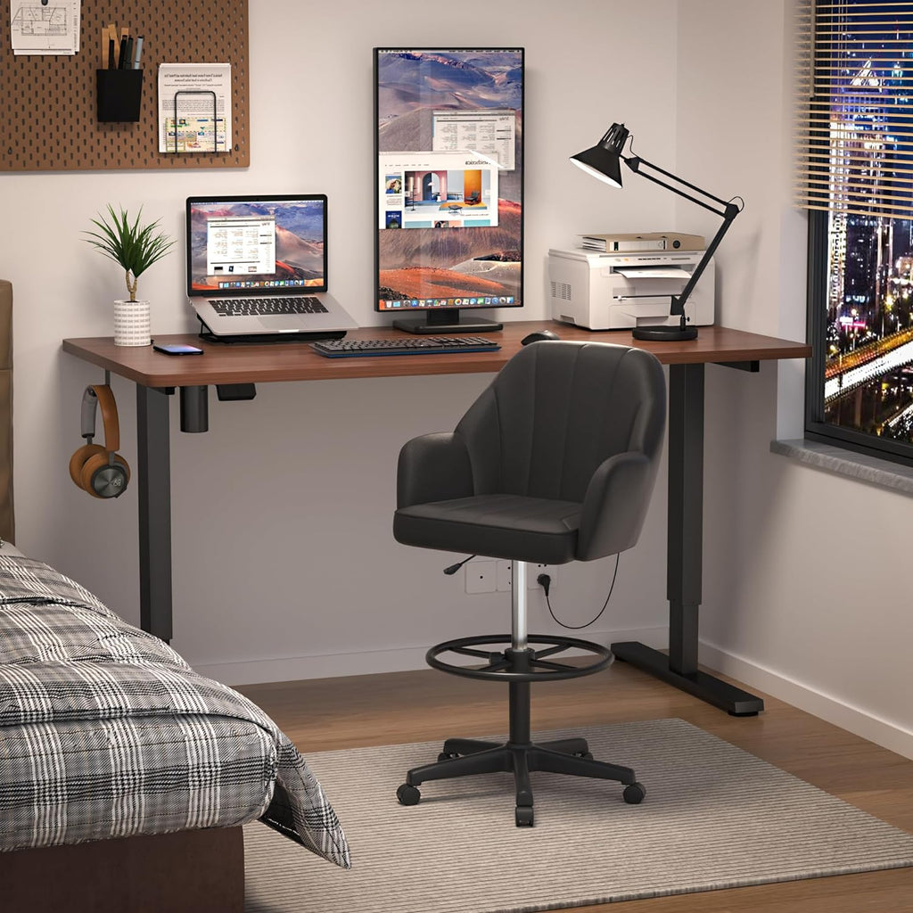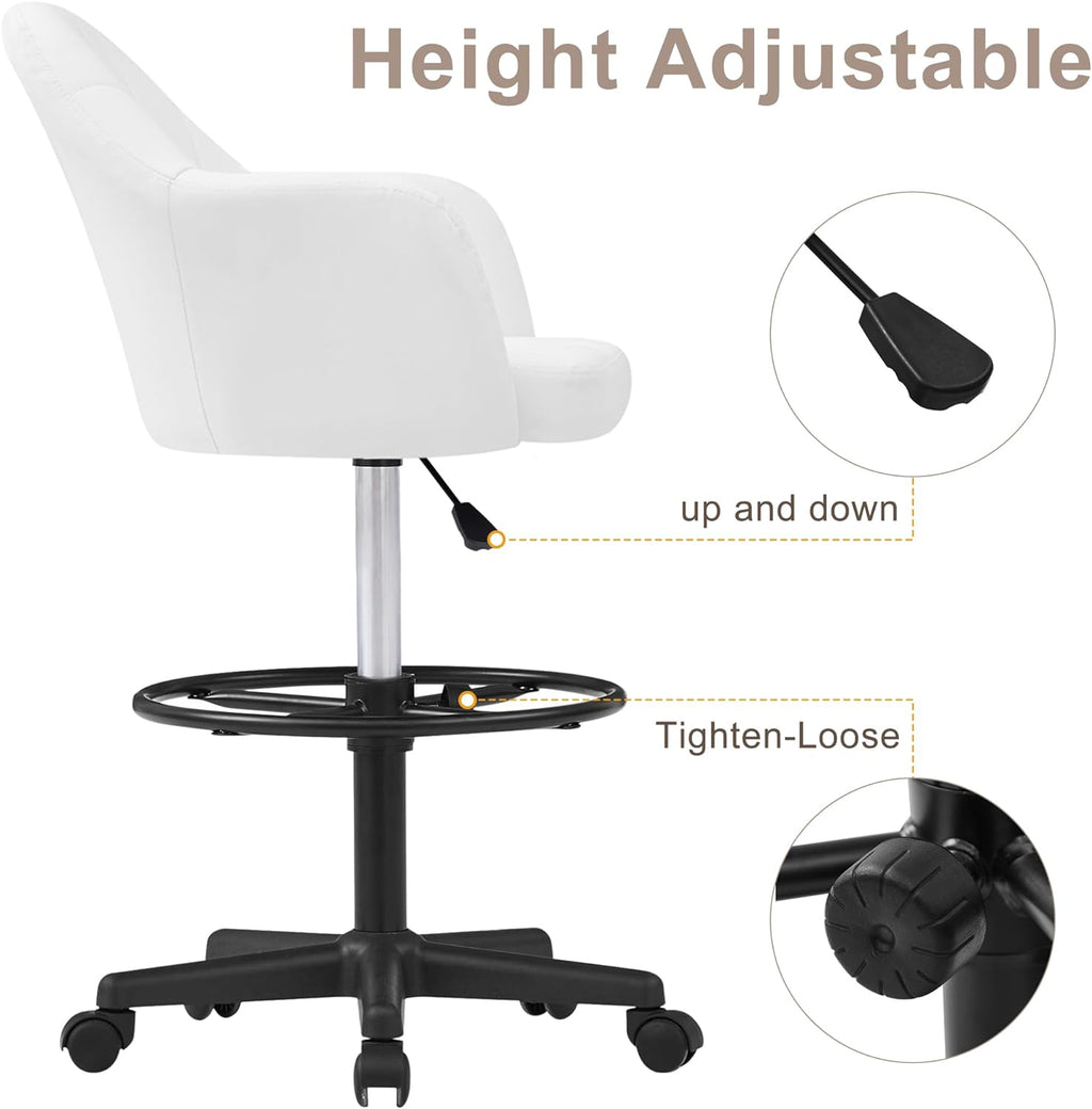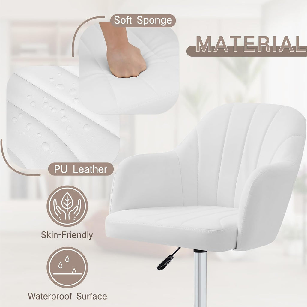 • 【Premium PU Leather & Modern Style】 This home office chair features a modern design with a sleek curved backrest, creating an exquisite look that enhances the ambiance of your home/office. The smooth PU surface ensures breathable and can be easily cleaned with a cloth, offering waterproof and wear-resistant properties. It is highly suitable for office, meeting, study room, vanity room, and bedroom and can be used as a computer chair, drafting chair, vanity desk chair, etc.