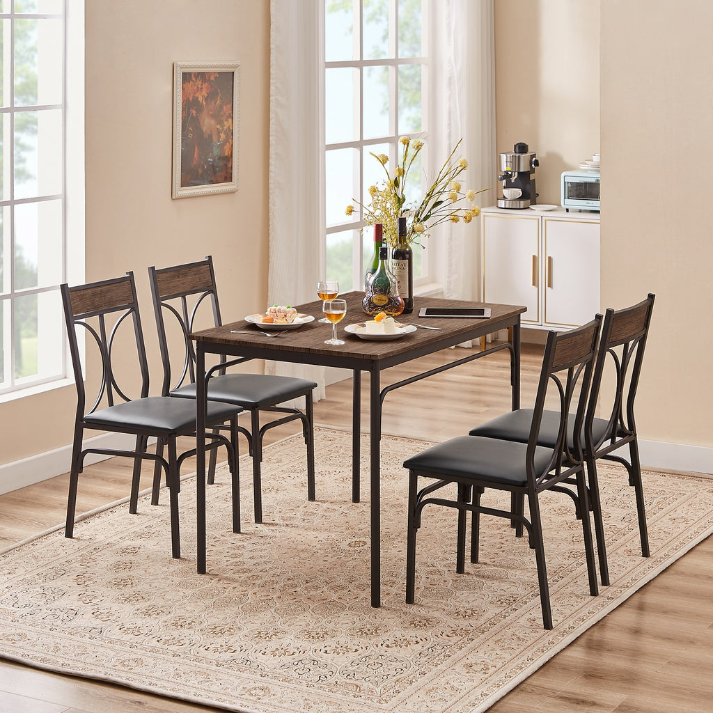 VECELO Industrial 5-Piece Modern Rectangular Dining Table Set with 4 Chairs