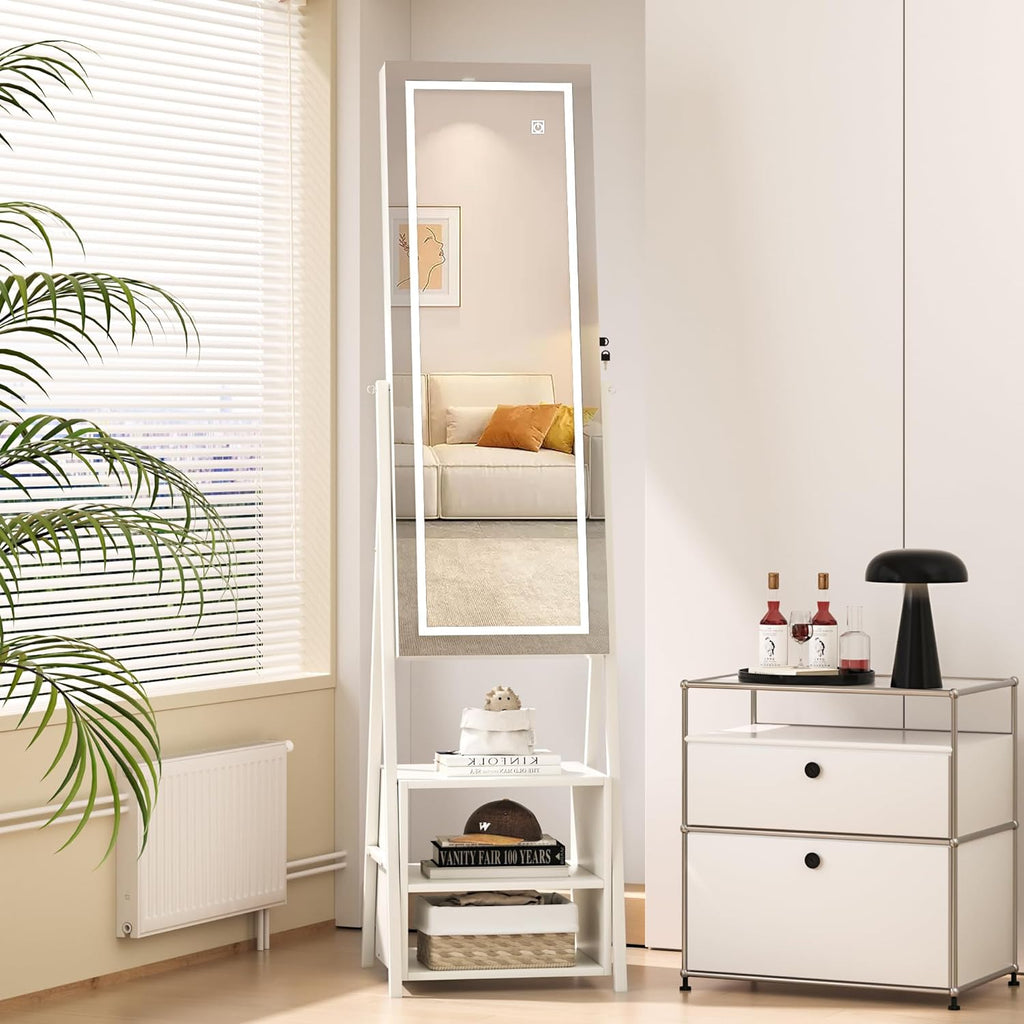 Full Lenght Mirror with Storage and Adjustable LED Lights