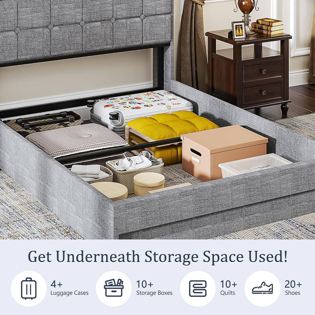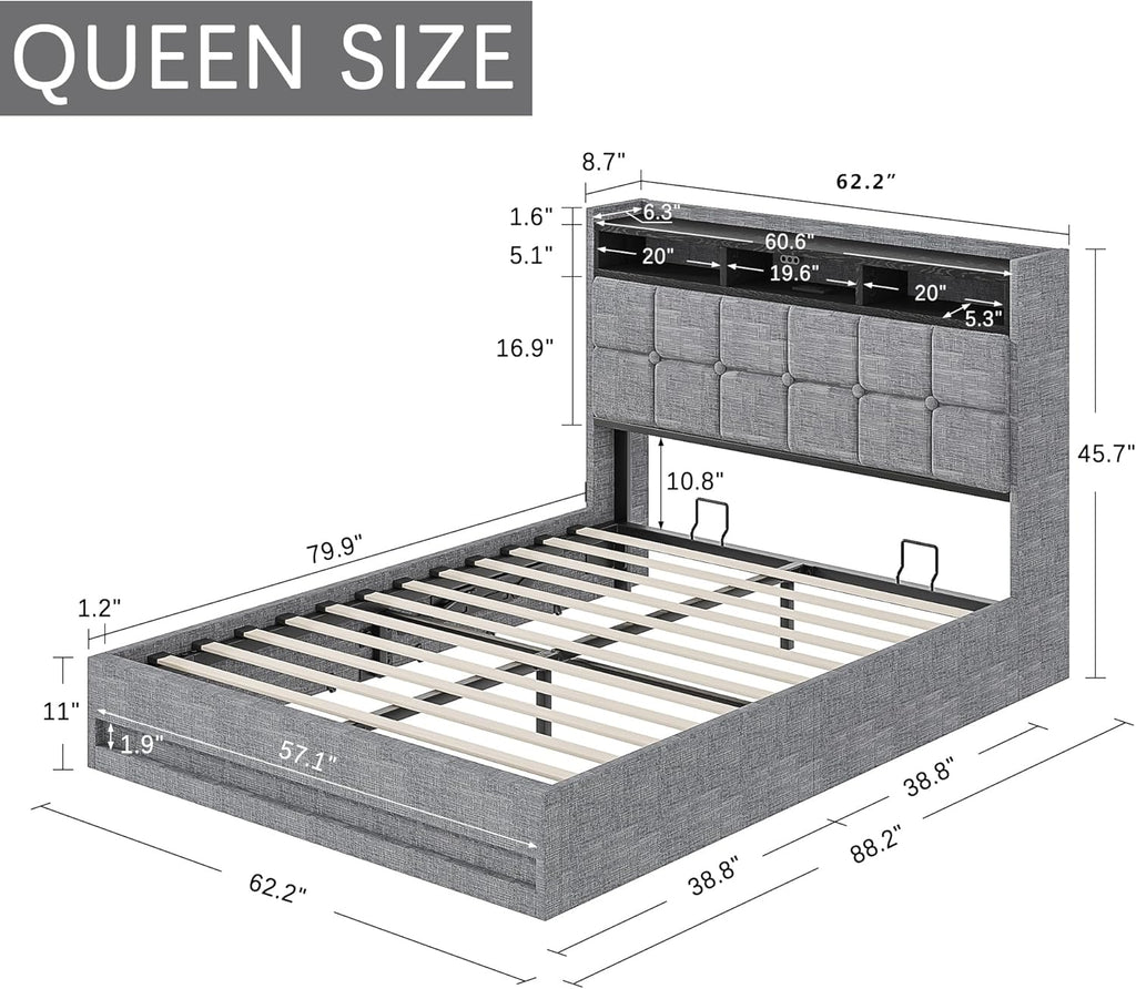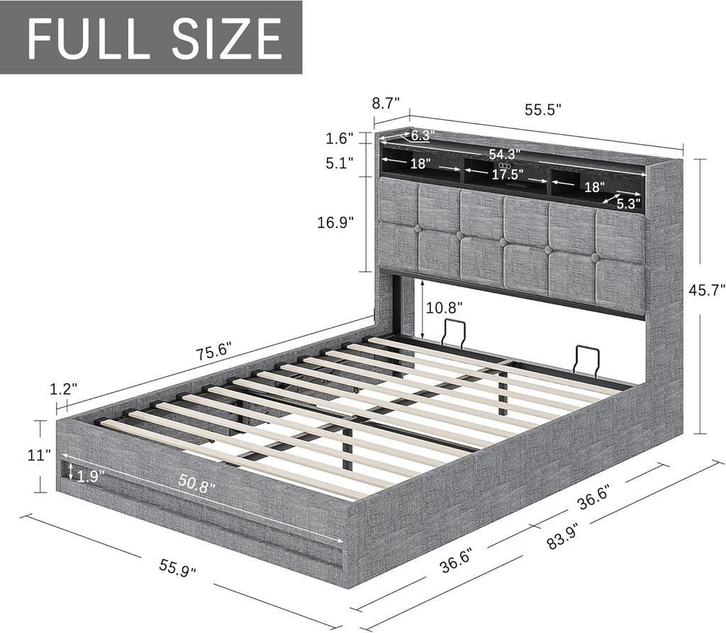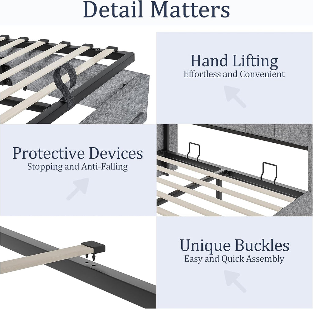 • Easy to Use: The hydraulic lift mechanism allows smooth lifting of the full size bed frame, making storage access effortless without heavy lifting.
