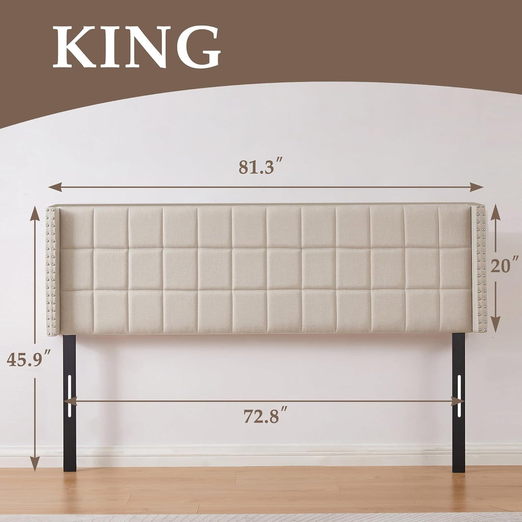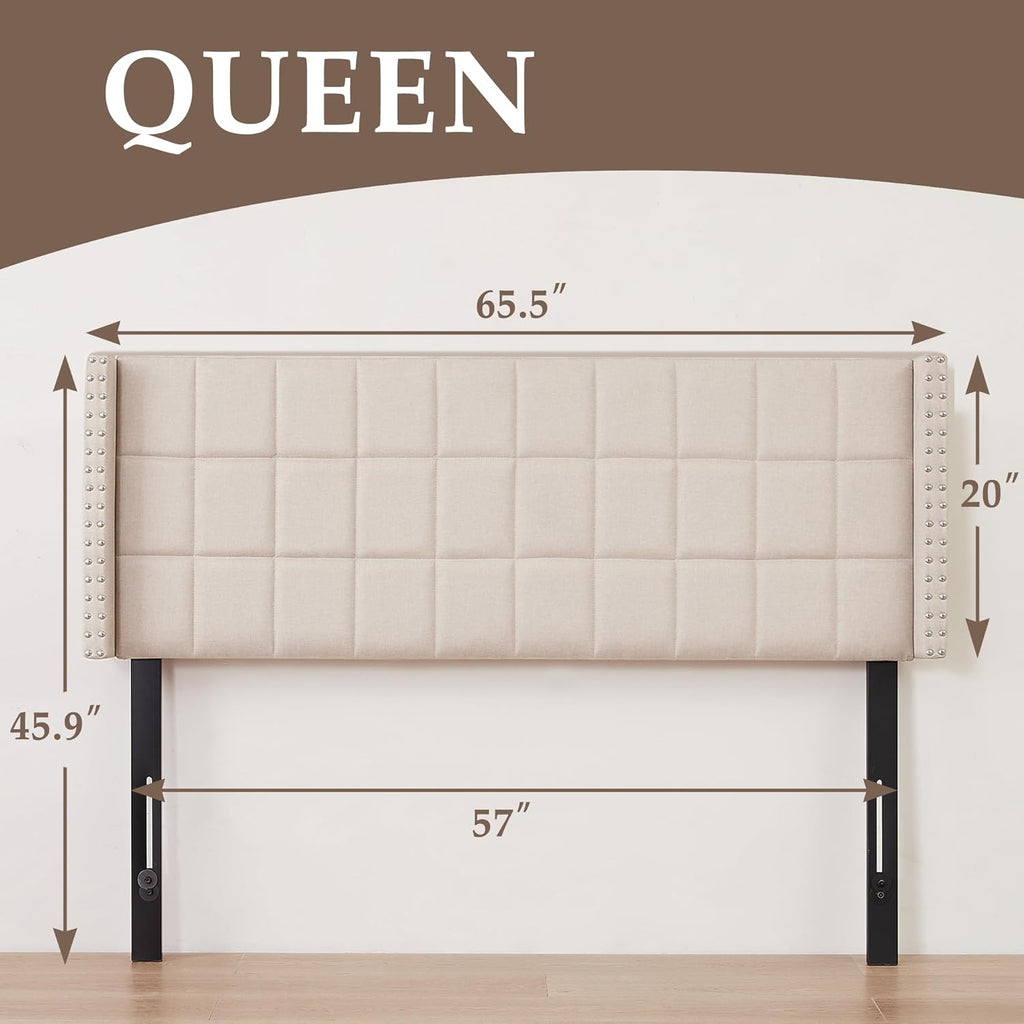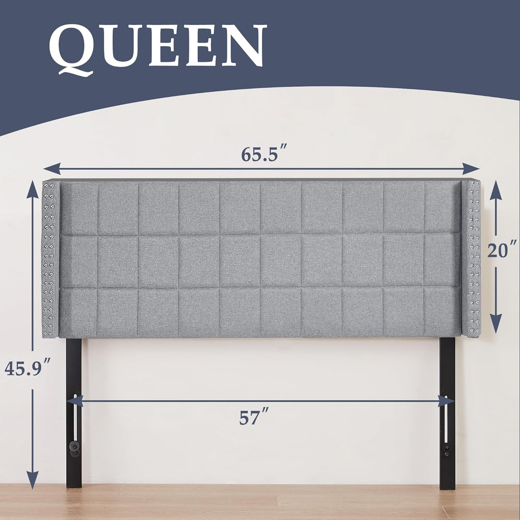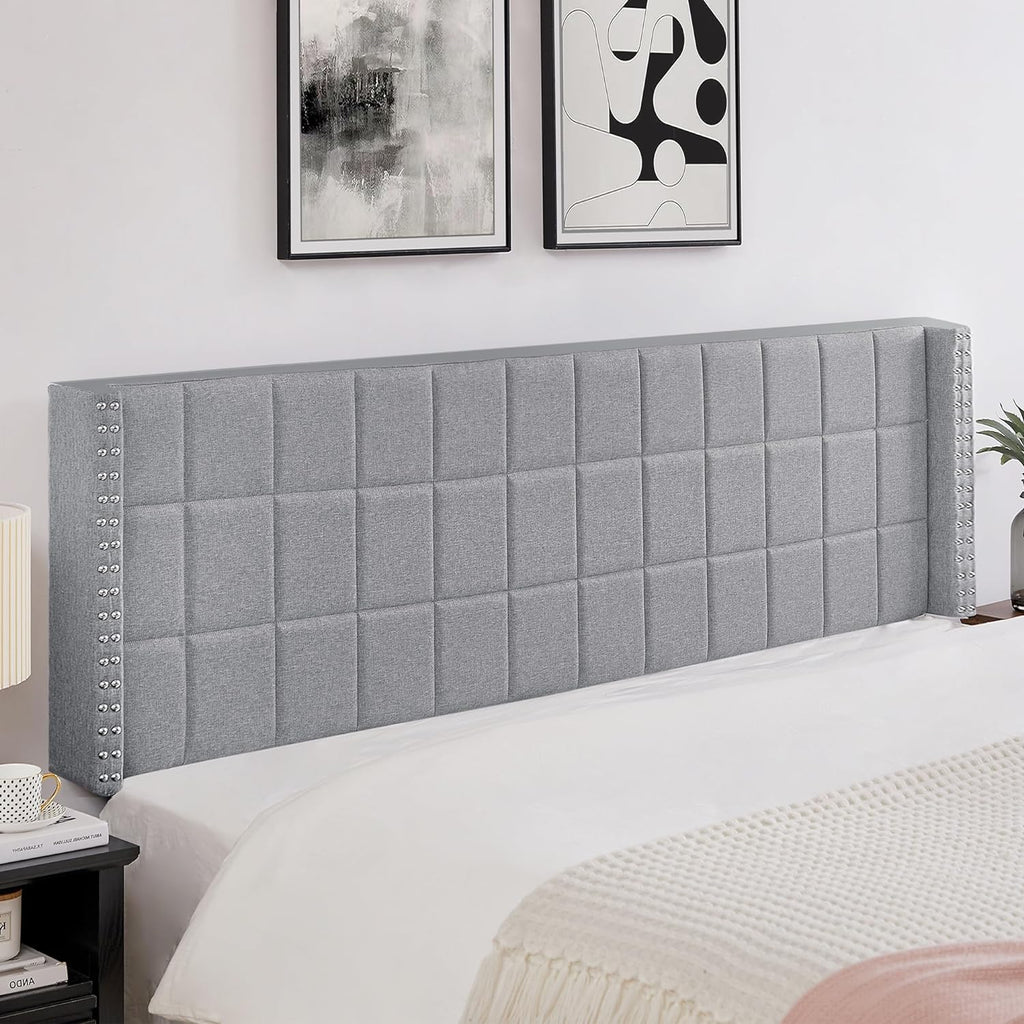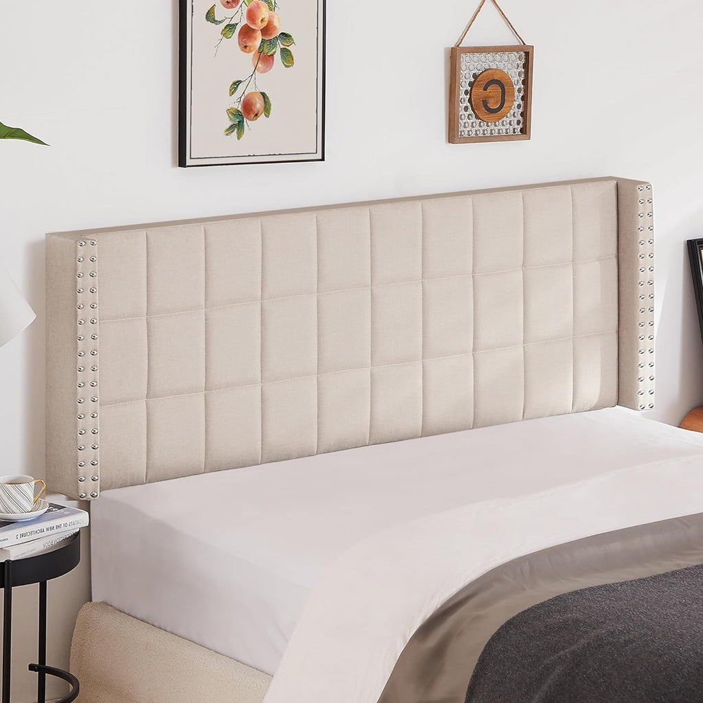 VECELO Linen Upholstered Headboard for Queen/King Size Bed, Tufted Nailhead & Double Wingback for Bedroom