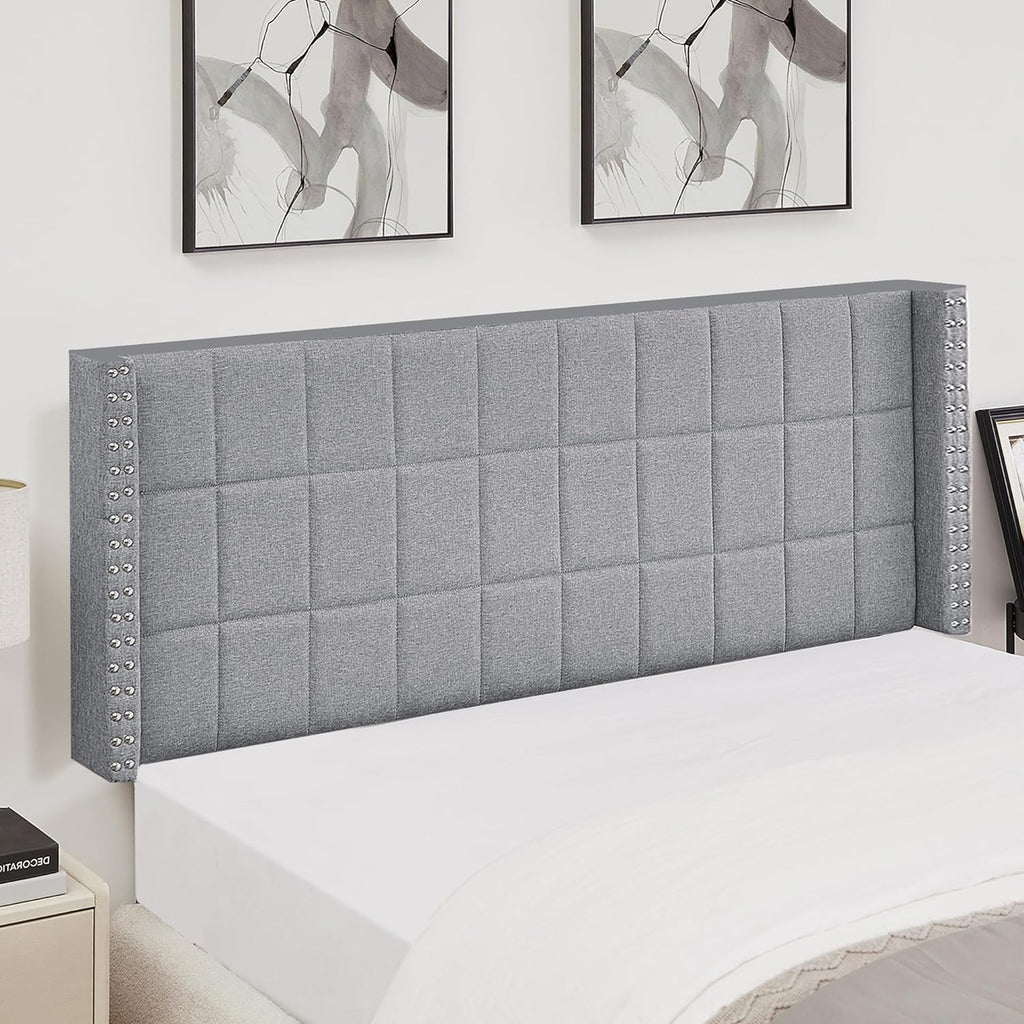 • Premium Material: The headboard fabric is made of premium linen, which prevents fading and provides a comfortable touch. The padded headboard is filled with high-density foam upholstery, creating a cushioned texture. The upholstered headboards will bring comfort to you and your family.