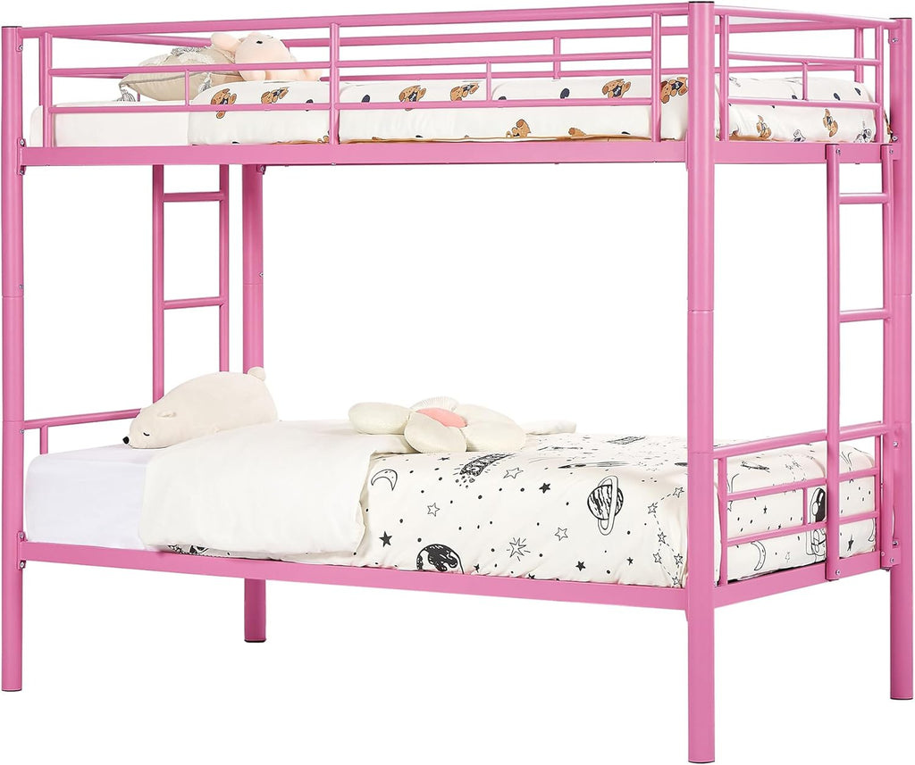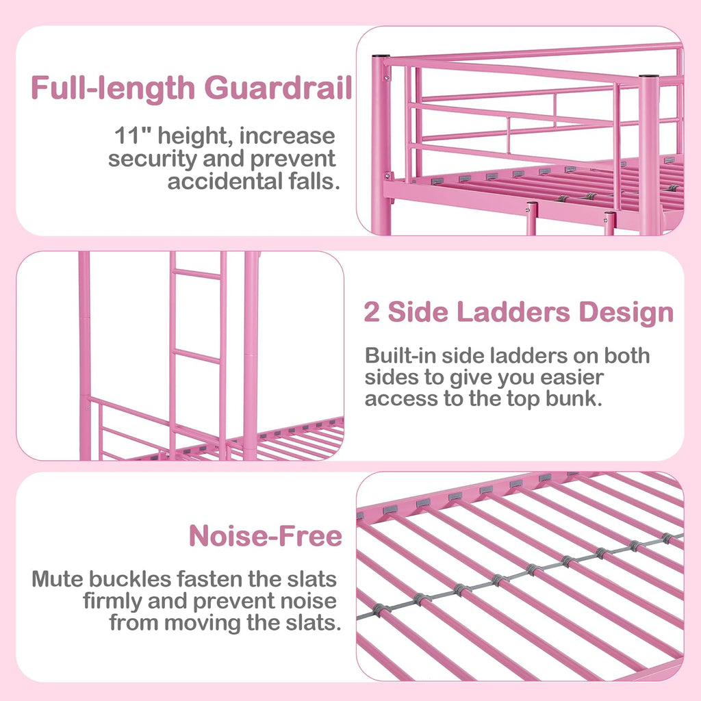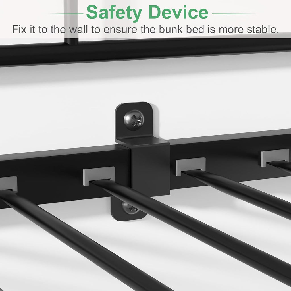 • [Sturdy & Stable] - Crafted from heavy-duty metal, this bunk bed is designed to provide long-lasting stability and durability. With its 20 metal slats, this bunk bed twin over twin offers reliable support and eliminates excess wobbling, guaranteeing a solid and sturdy structure. You can rest assured knowing that our bunk bed provides a stable foundation for a comfortable night's sleep.