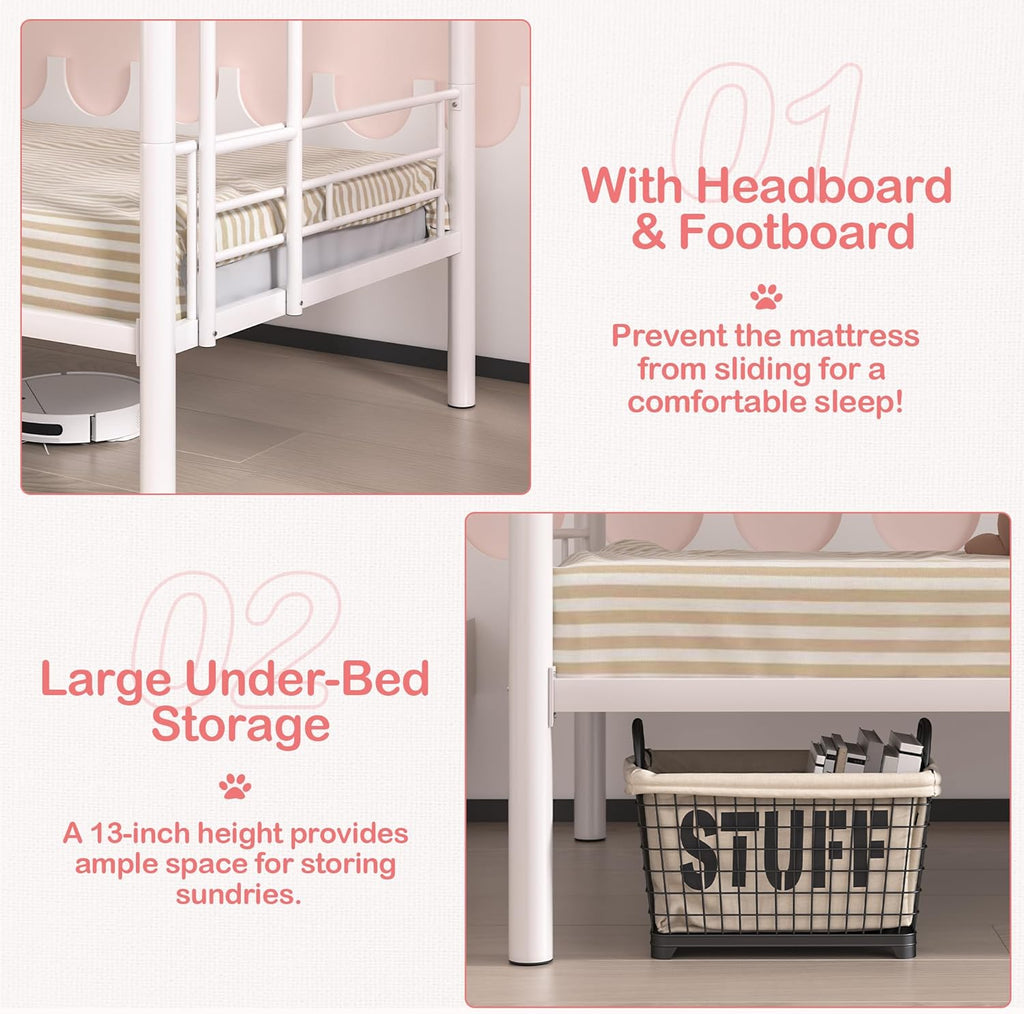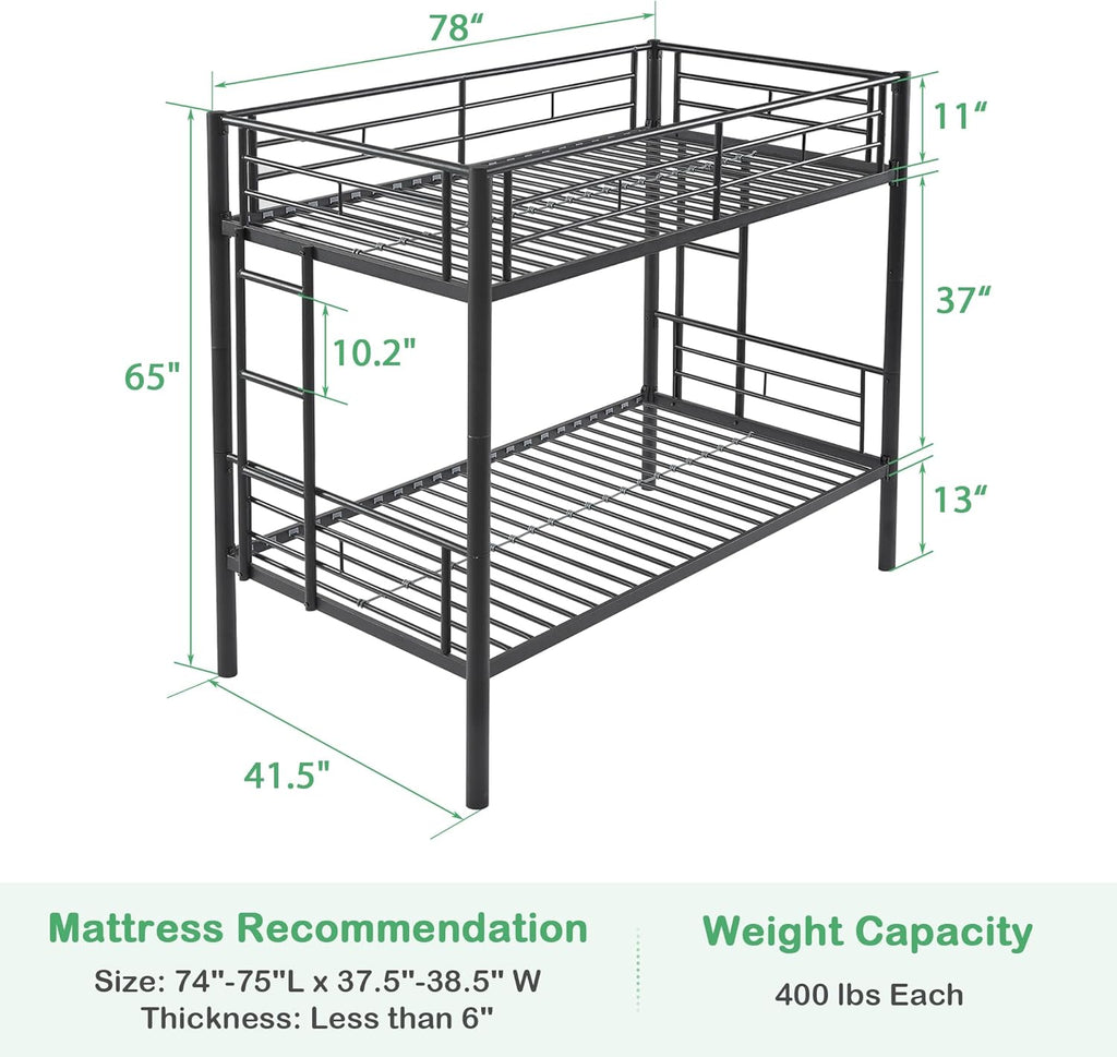 • [Multi-Purpose Bunk Beds] - This heavy-duty bunk bed offers the flexibility to convert into two individual twin-size beds, providing maximum versatility for your living space. Designed with your storage needs in mind, our twin bunk beds feature a generous 13" of space underneath. This ample storage area allows you to conveniently organize and store various items such as extra bedding, clothes, and more.