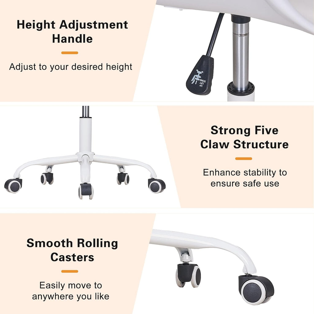 • Durable Wheels: This adjustable desk chair wheels are designed for 360° rotation, engineered to reduce noise and suitable for various floor types. Made from quality iron materials, they are sturdy and durable, capable of withstanding the rigors of daily use.