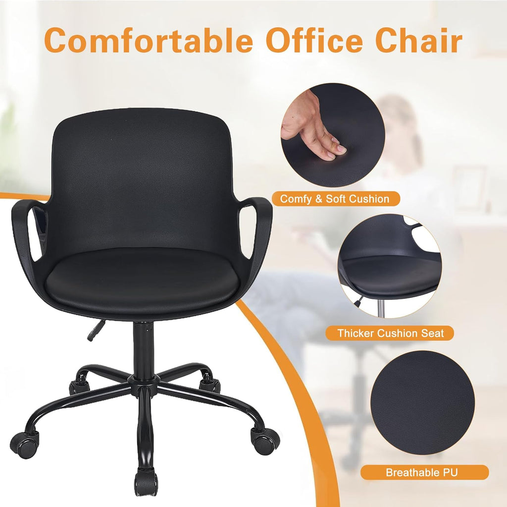 • Comfortable: The work chair for home office features a PU cushion filled with sponge for a soft, bouncy seat. Adjustable in height and equipped with 360-degree swivel wheels for agile comfort. The supportive backrest eases back strain, the armrests enhance extra coziness.