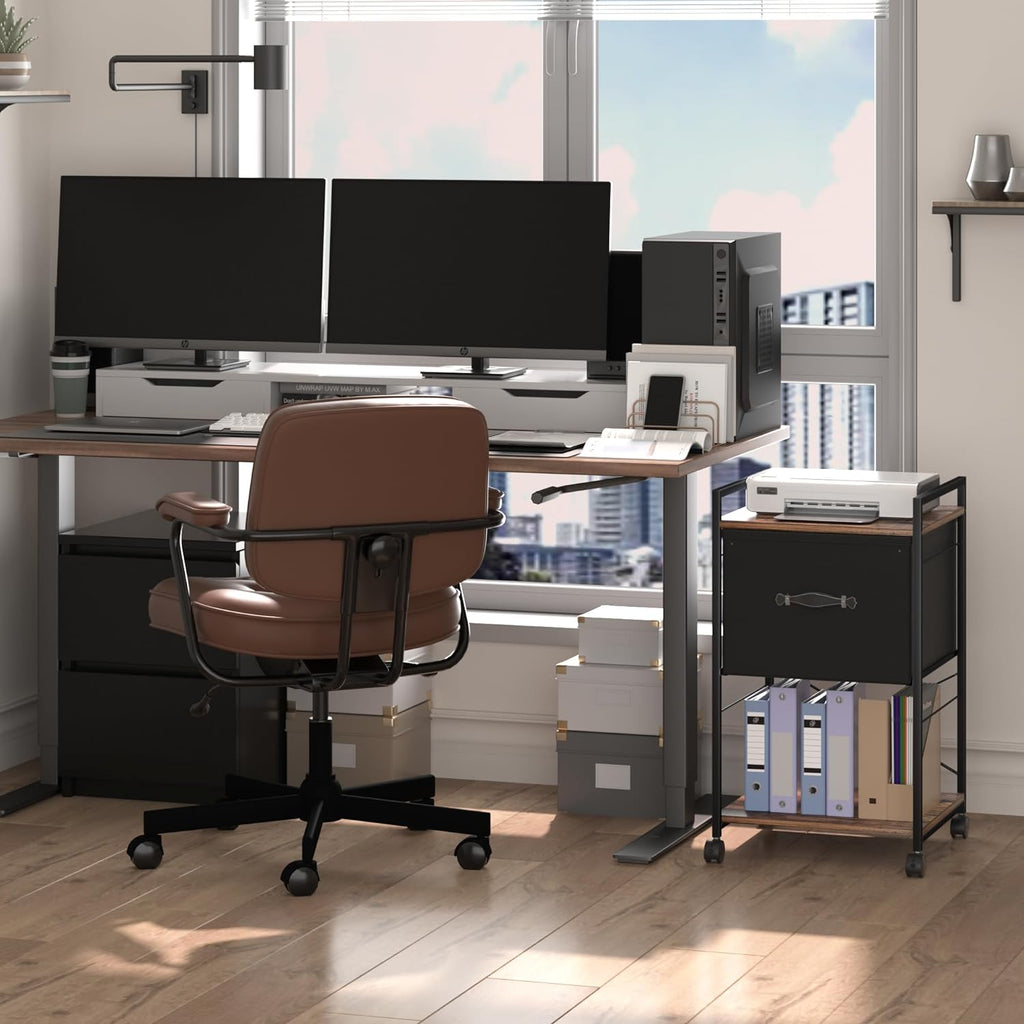 • 【Sturdy Construction】: The printer cabinet is made of metal frame and MDF for strong support and durability. The drawers are made of a tougher, lighter fabric, making the entire filing cabinet look lighter.