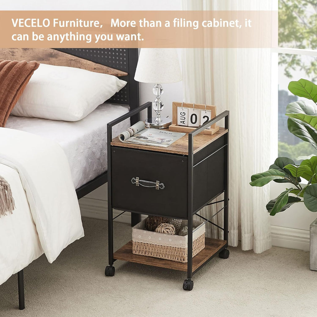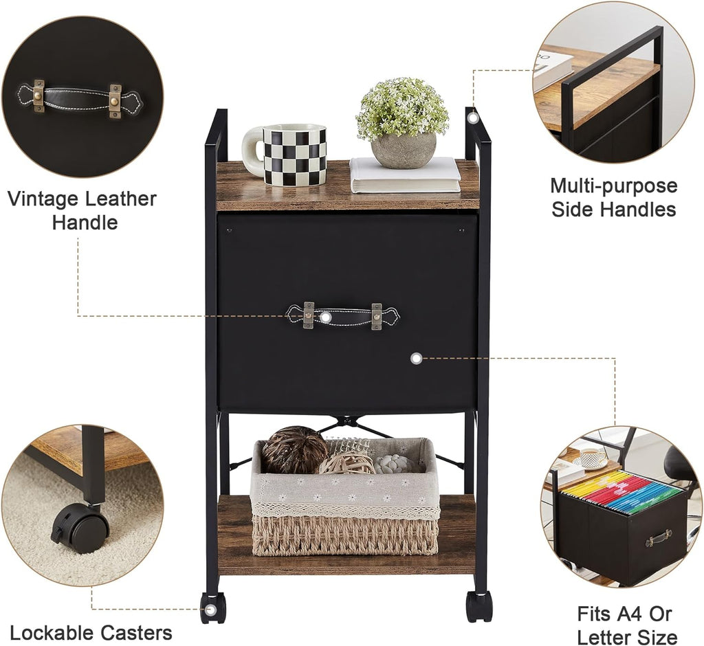 VECELO Mobile Vertical Filing Cabinet, Rolling Printer Shelf with Handle