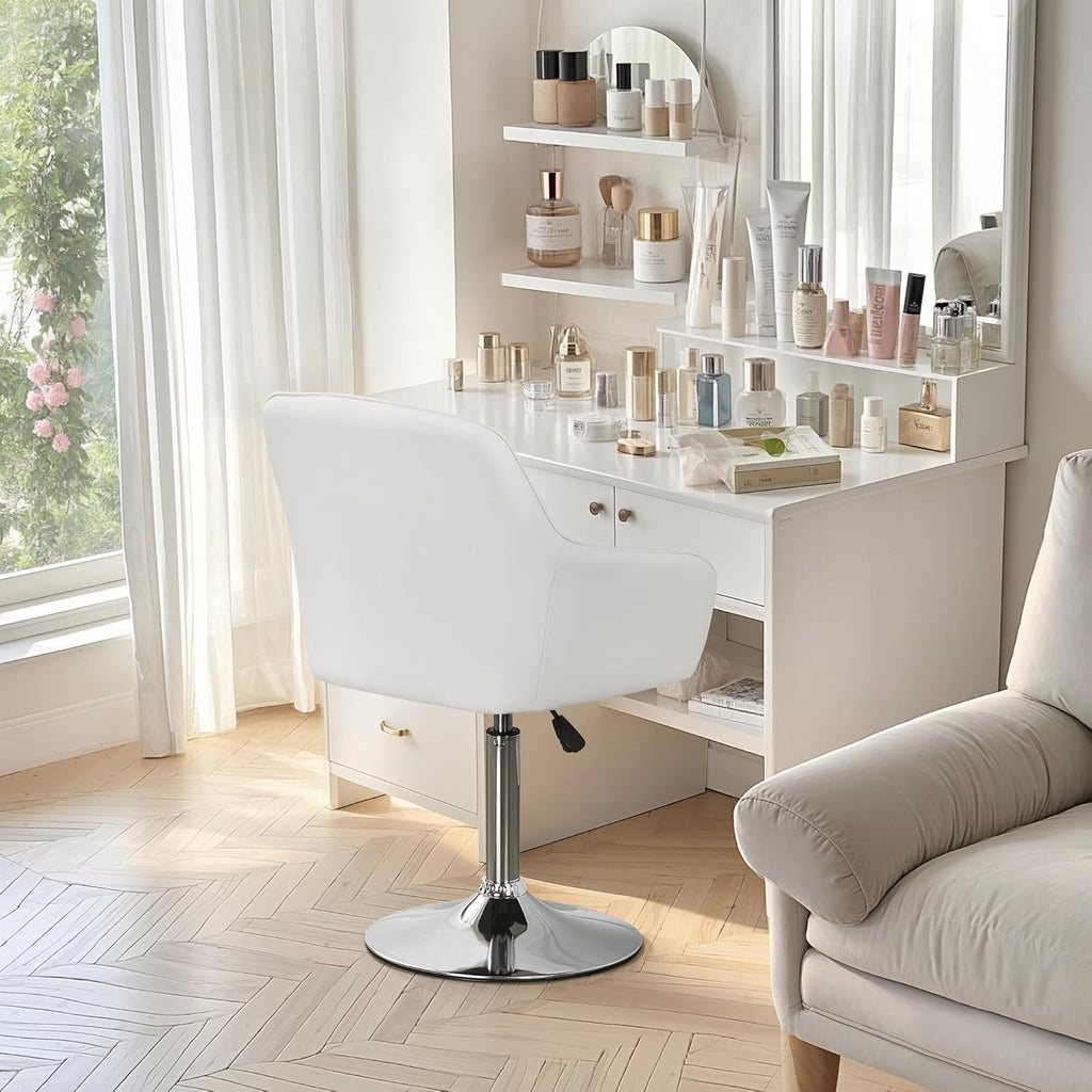 • 【Elegant White PU Leather Upholstery】-Soft, durable white PU leather adds a touch of luxury to your vanity space while being easy to clean.