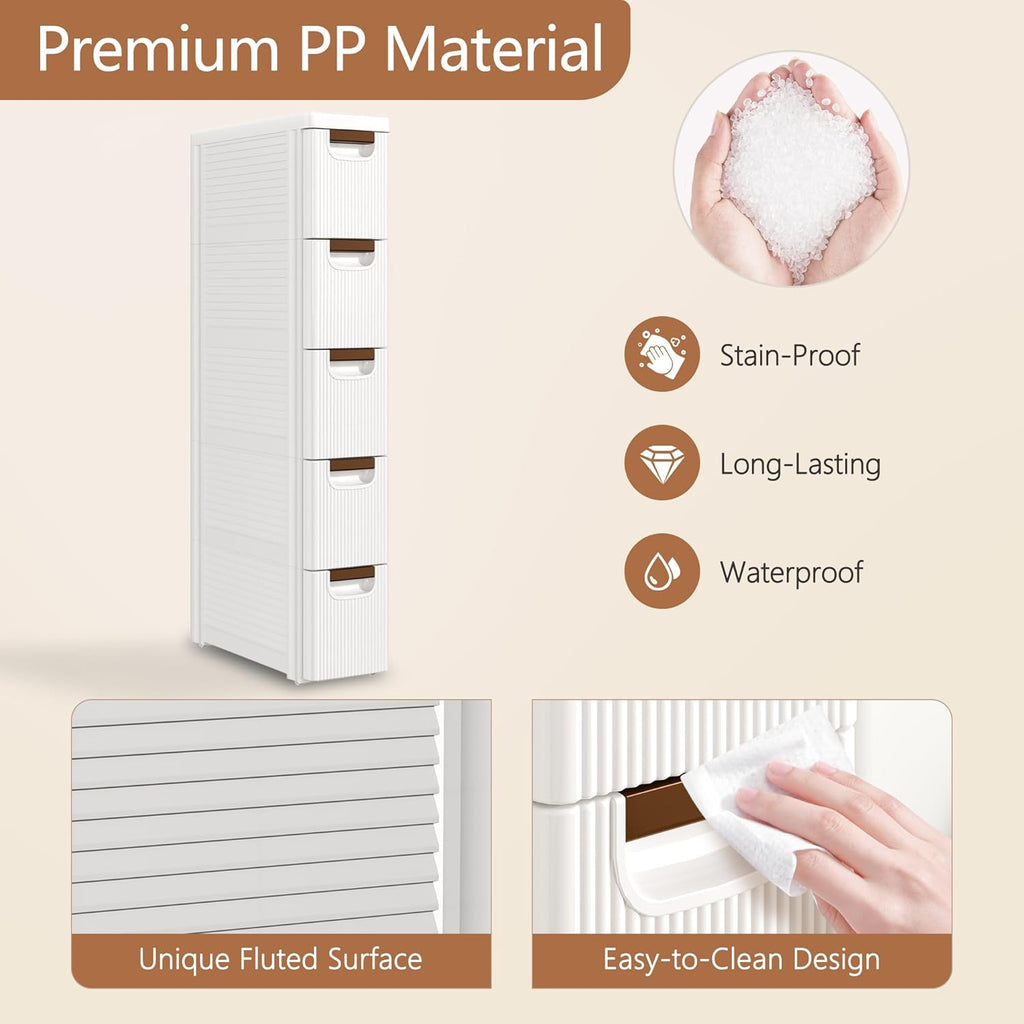 • 【Large Capacity & Multi-Purpose】 Narrow storage drawer has3/4/5 spacious drawers, narrow storage cabinet offers plenty of room to keep office supplies, kitchen tools, toys, snacks, or bathroom items neatly organized and easily accessible