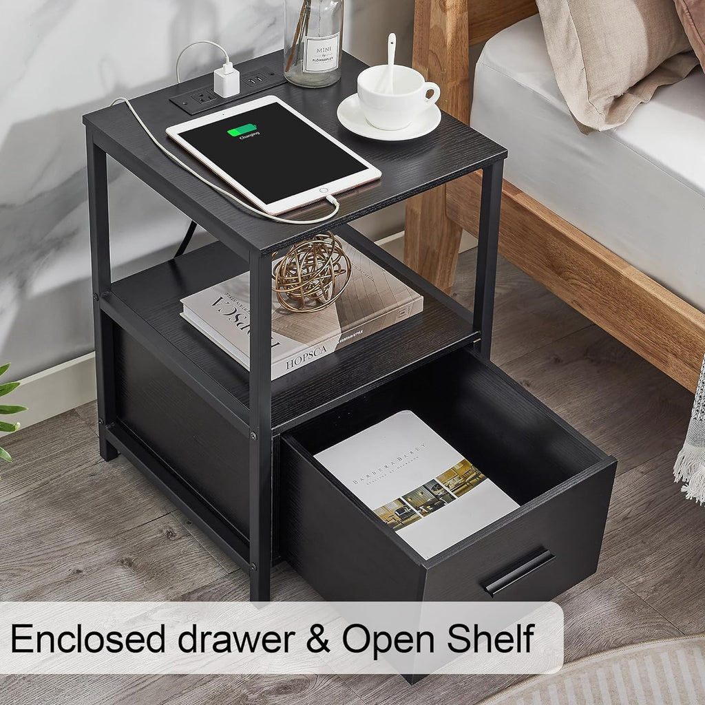 • 【Nightstand with Charging Station】Featured with 2 AC outlets and 2 USB ports. Easily charge your phone, tablet, desk lamp or laptop. Handy for your place as everything needed is within your arm’s reach;