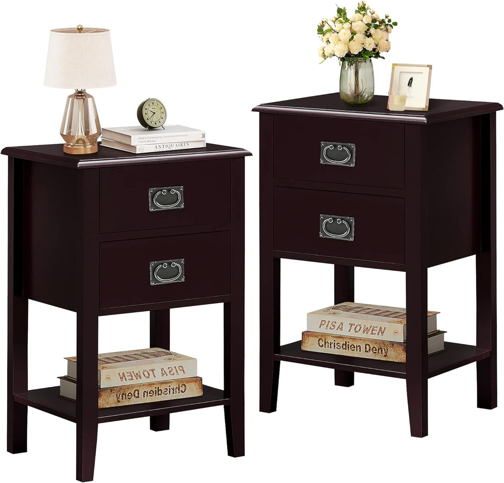 VECELO Modern Nightstands Set of 2, Side End Table with Drawers