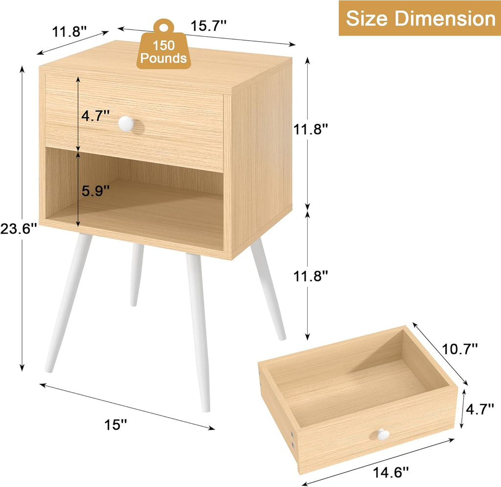 • ●[Sturdy & Durable]: The nightstands set of 2 are crafted from a wood frame and metal legs, providing a stable structure to ensure long-lasting use. The eco-friendly, polished paint surface is easy to clean and resistant to scratches. Maximum load: 150 lbs.