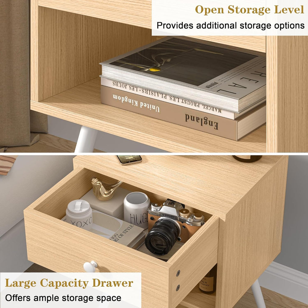 • ●[Classic Design]: The mid-century nightstand combines functionality with sleek, modern style. The clean lines and elegant colors of the nightstands add charm and beauty to your home decor.