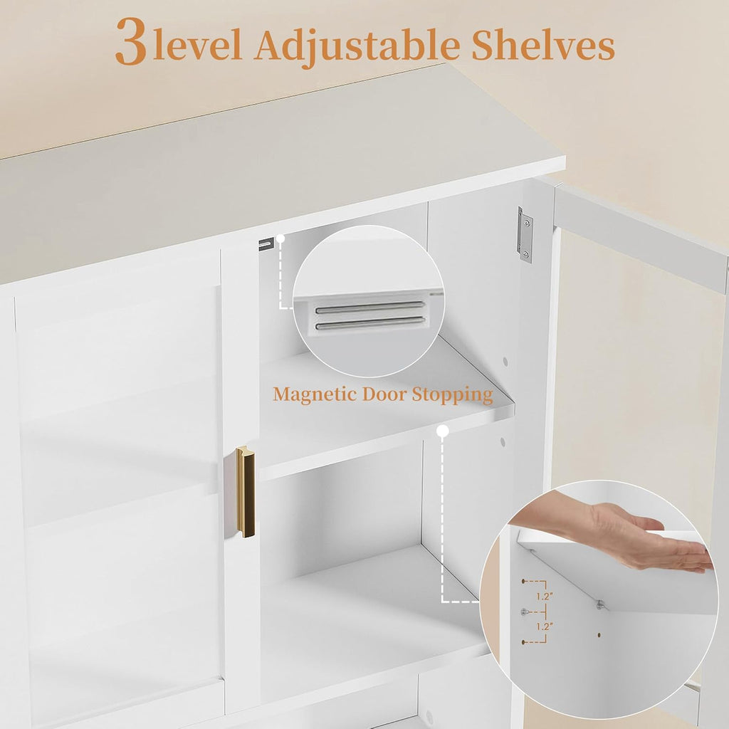 • Flexible Adjustable Shelf: Bathroom storage cabinet shelf behind the door can be adjusted to 3 height positions. Floor mount bathroom cabinet provides ample space for items of different size.