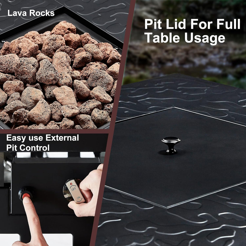 • CSA Approved Certification: Each square fire pit table for outside has been CSA certified before reaching our users to ensure your using safety. The push button spark ignition system ensures simple and convenient control (AAA Battery required and included with the package).