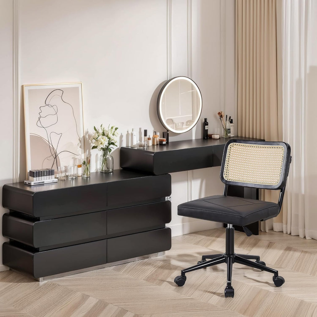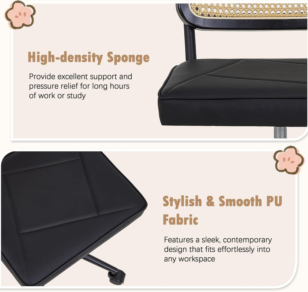 • Sleek & Stylish: This armless PU office chair features a sleek, contemporary design that fits effortlessly into any workspace. As a black office chair or a stylish chair for vanity, its smooth PU seat is durable, easy to clean, and perfectly blends aesthetics with practicality
