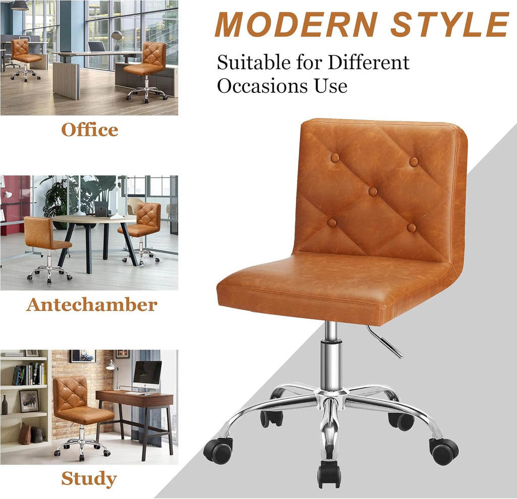 • 【High-Quality Armless Office Chair】Crafted with top-tier PU material, this office chair exudes a luxurious quality.360-degree smooth swivel makes it glides effortlessly on wood floors, tiles and carpets without scratching. The armless design emanates a modern minimalistic vibe, elevating your sense of contentment while using our premium mid back office chair, enhancing your productivity during work.