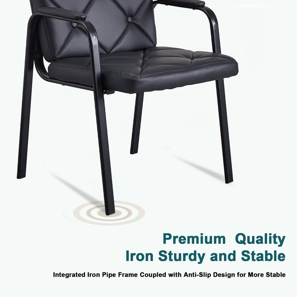 • Classic Design: The chair for office guests with black PU and metal frame, with a minimalist black plaid pattern, is perfect for waiting rooms, reception areas, and offices, adding a stylish flair to any space.