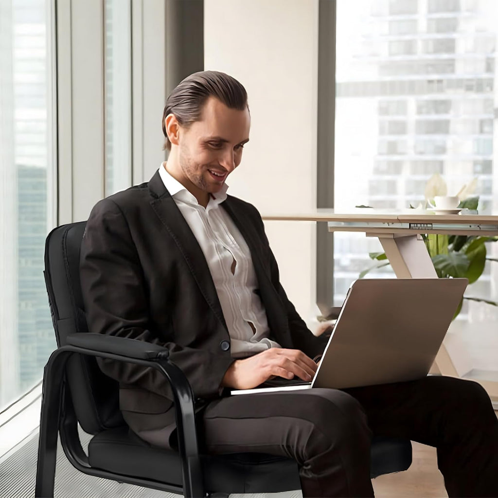 • Comfort: This office lobby chairs features a padded cushion that evenly distributes weight for a relaxed posture. The armrests are perfectly positioned, and the leather pads provide a soft touch for added comfort.