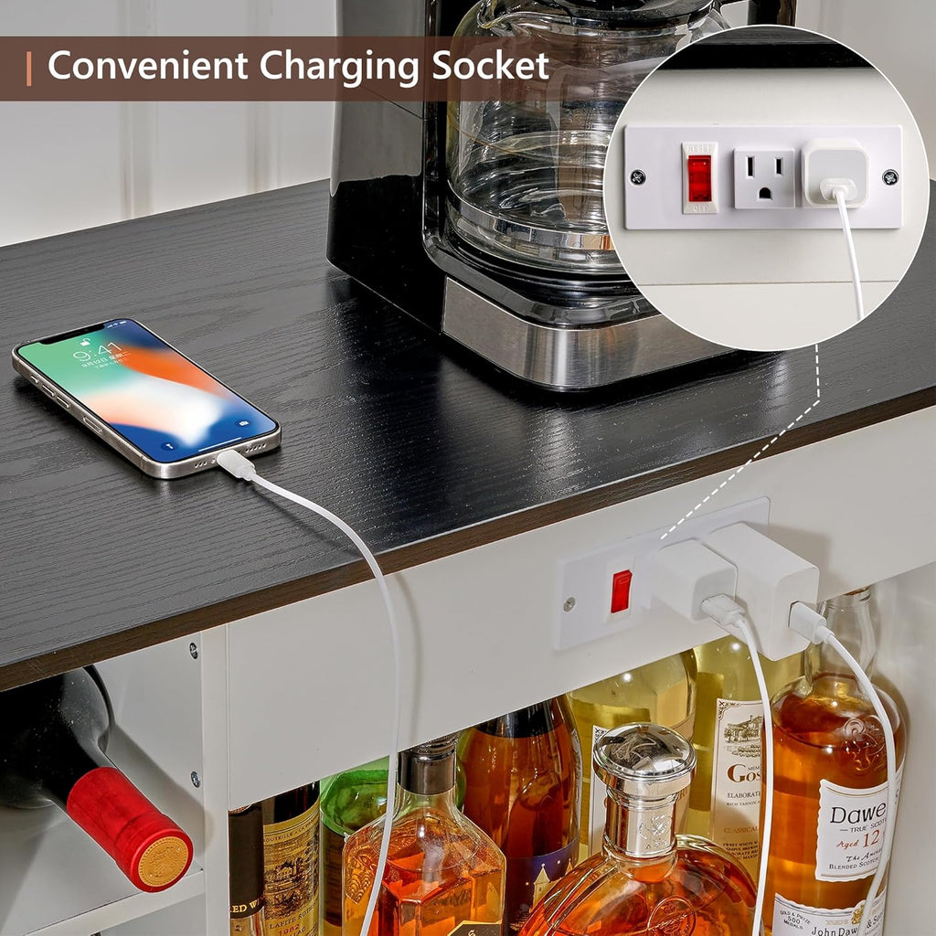 • Easy Mobility: 4 360-degree rotating wheels allow the microwave stand with storage to move smoothly and freely, or be fixed in place with 2 lockable casters. The coffee cart's power outlet makes it easy to charge kitchen devices and phones.