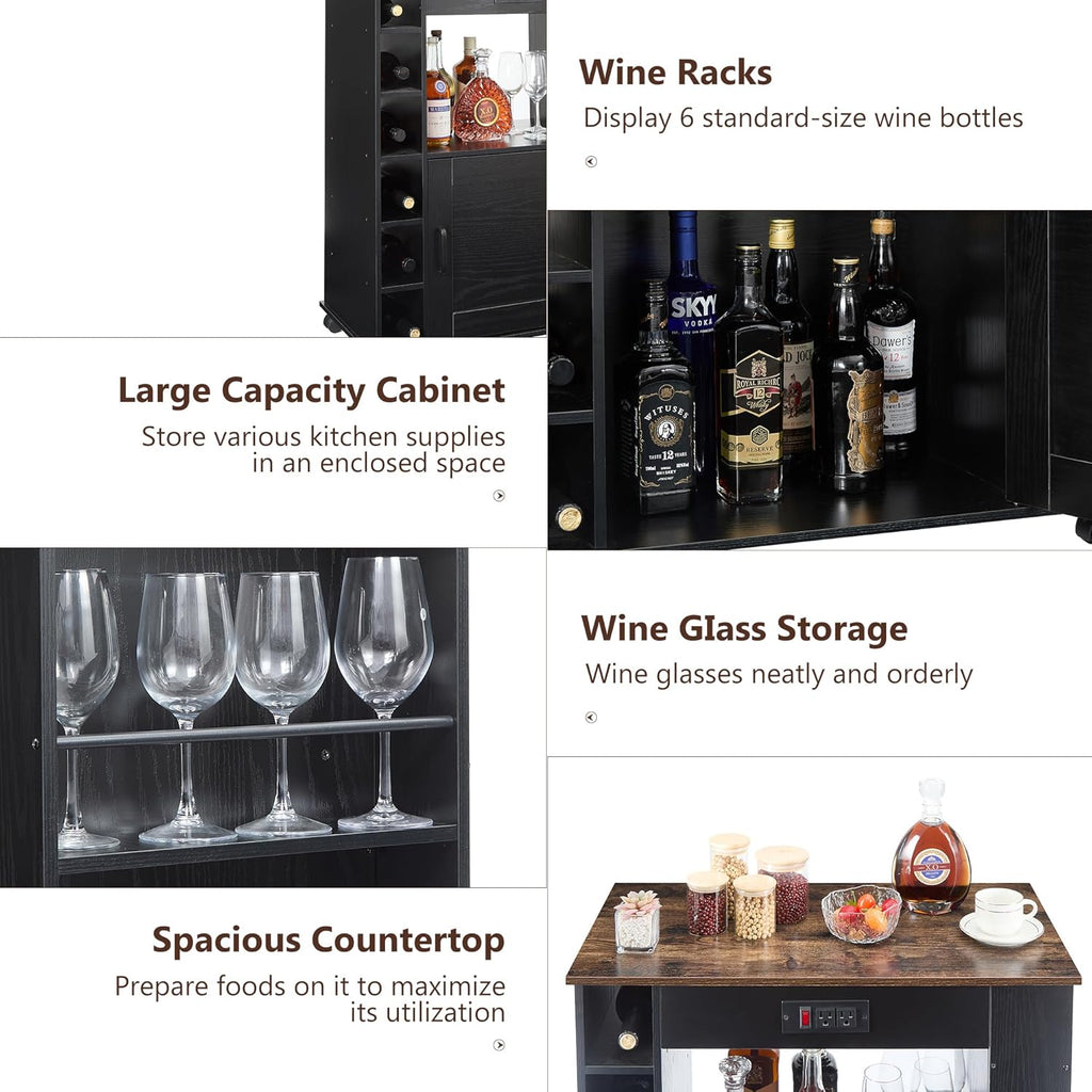 • Ample Storage Space: This island table for kitchen offers a large storage capacity to solve the problem of limited counter and kitchen space. The kitchen island with storage features a microwave shelf, wine racks, open shelves and large storage cabinet for categorized storage to keeping your kitchen organized.