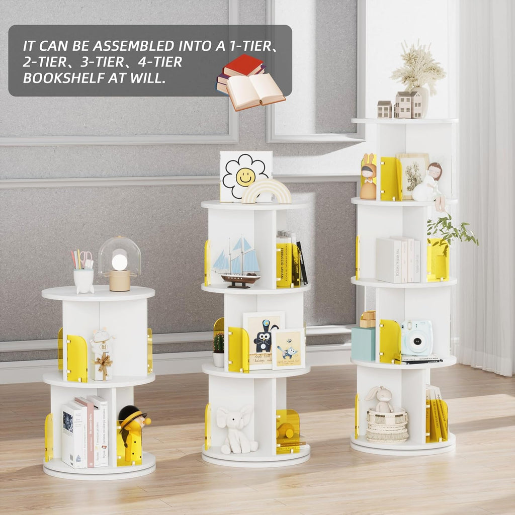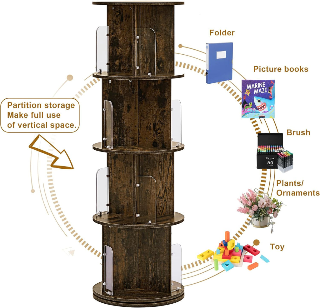 • 【Large Capacity】 4-tier open revolving bookshelf with 16 small compartments, used for storing books, decorations, daily necessities, children's toys, etc., which combines practicality and storage. The compartments are of appropriate size, very suitable for storing books of average size, with a maximum capacity of 100 books!