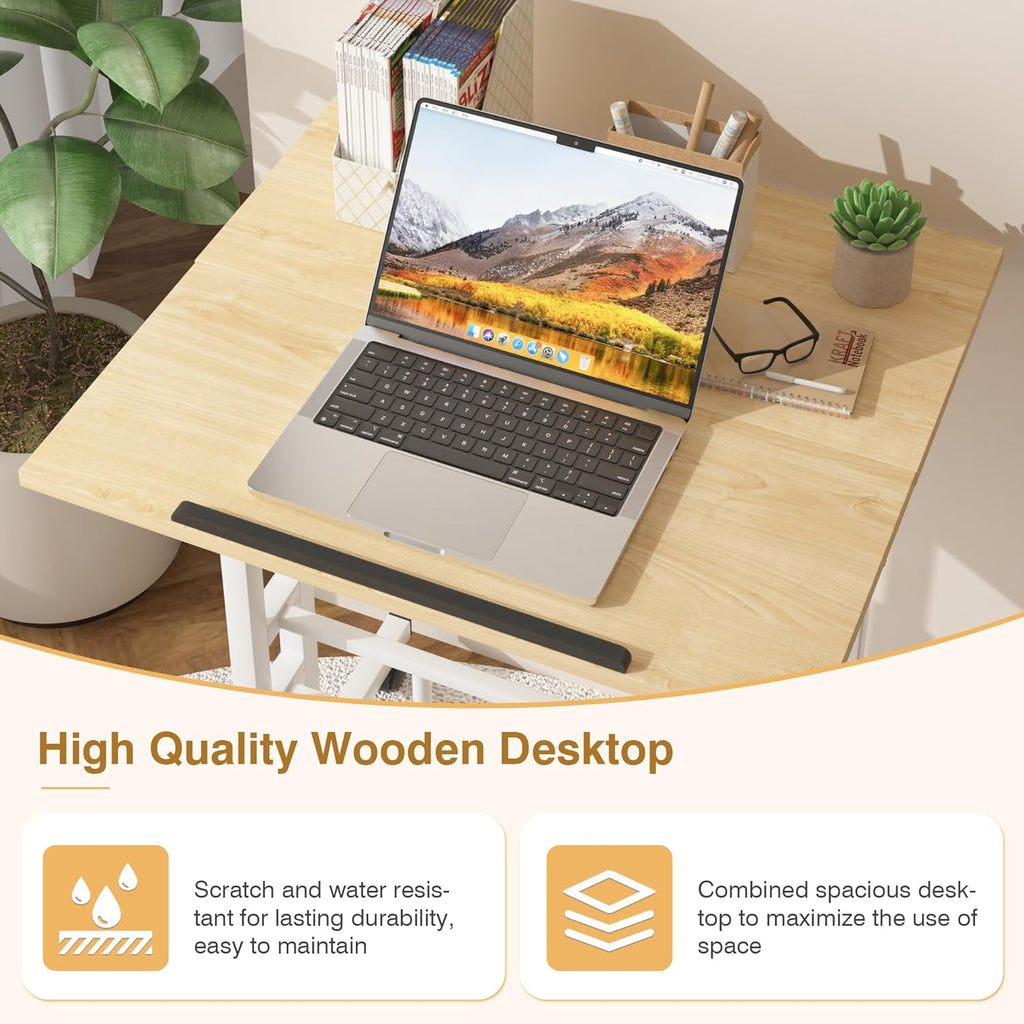 • Lockable Caster Wheels: Featuring 360° rotating caster wheels, rolling standing desk is effortless to move, even across carpets. The wheels include brakes, ensuring stability when stationary. In addition, the small computer workstations can be moved freely between different areas as required, enhancing its space-saving capability.