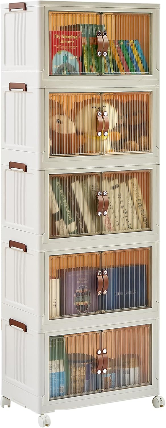 • 【Foldable & Tool-Free Assembly】These storage containers with lids can be folded and stored to save space. The 3 tier storage boxes only takes a few seconds to snap the components together—easy assembly without the need for tools.