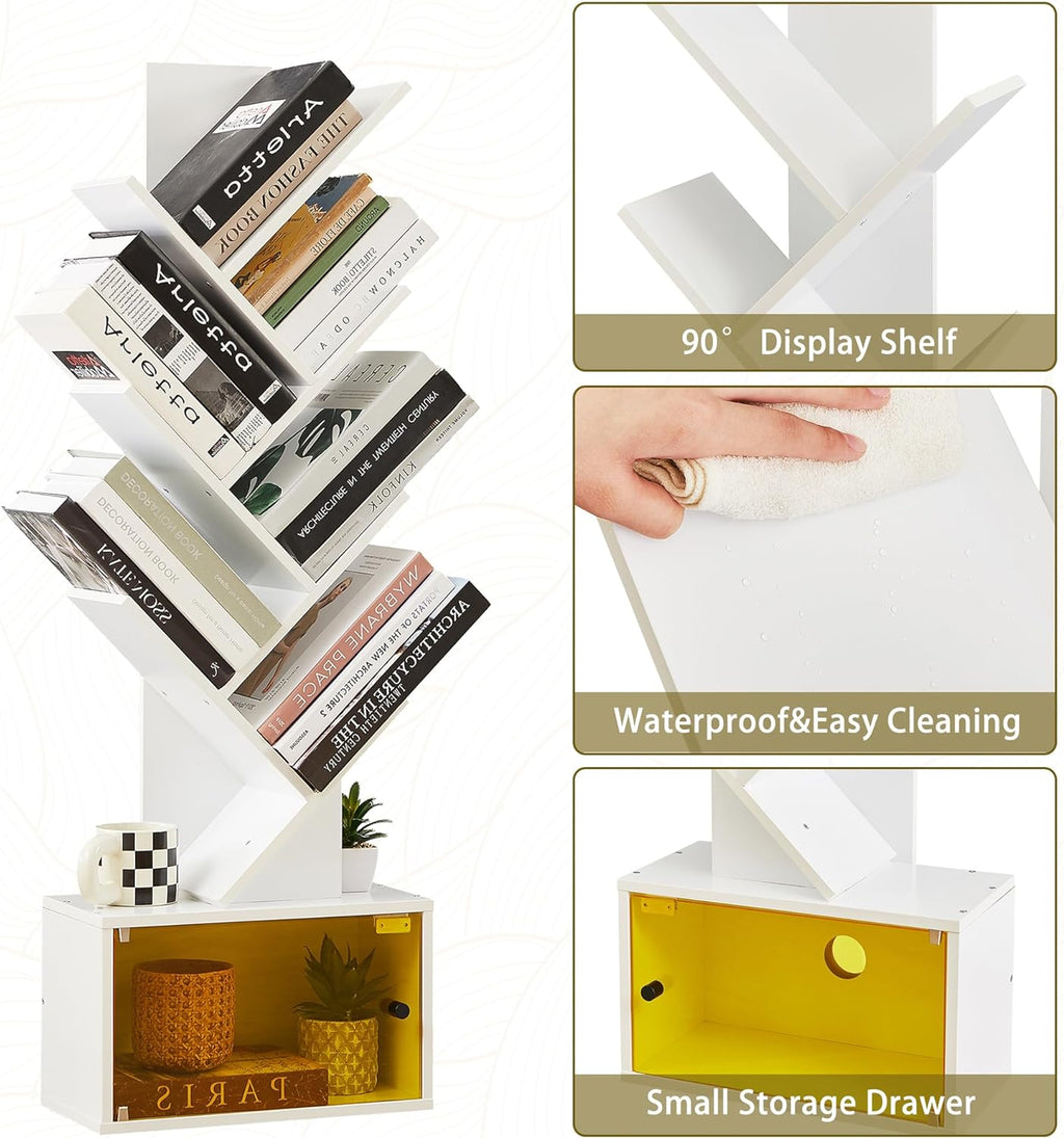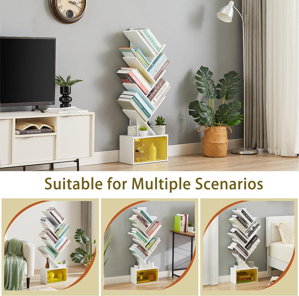 • 【Multi-functional Wooden Bookshelf】-- VECELO tree bookshelf,Perfect choice for using in living room to display family alubums, CDs,magazones or other favorite collections; to store books,file folders and other decorative stuff in office, and also suitable for kids' room to organize toys and books.