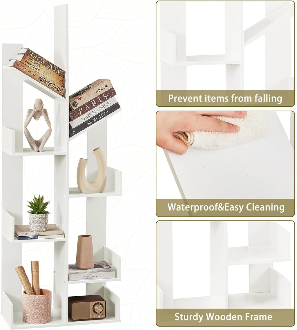 • 【Easy to Maitain&Clean】This tree bookcase organizer is perfect for decorating, organizing and storing your items while keeping them neat and organized in your room. The MDF Board shelves are waterproof, and can be easily cleaned with a wet cloth.