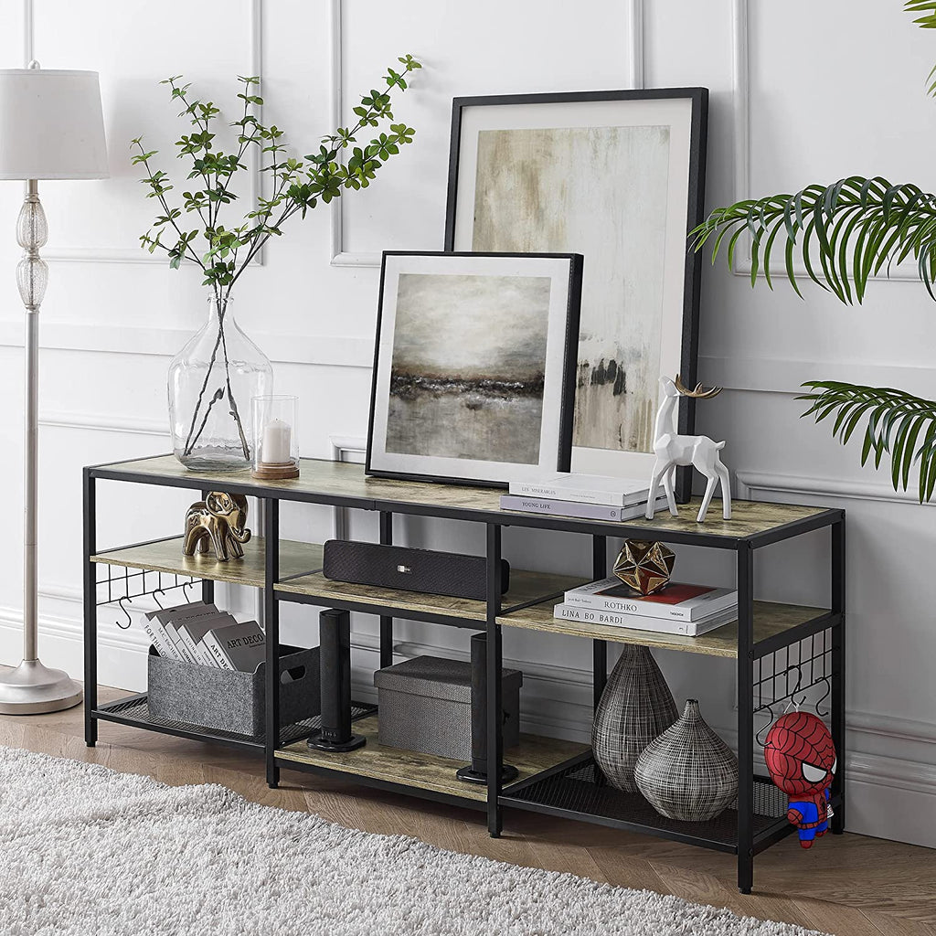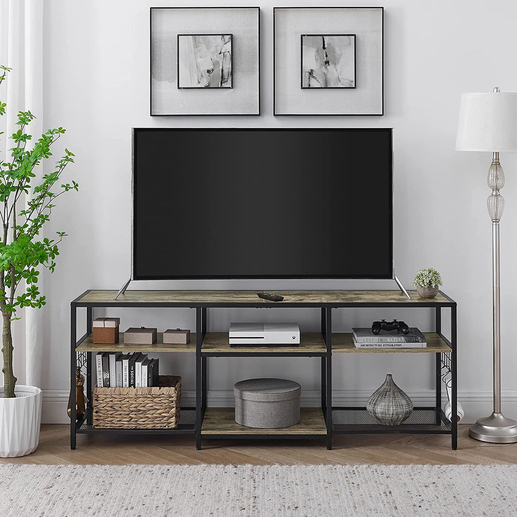 • 【An Industrial Touch】The TV stand is designed with grey shelves and a matte black metal frame to match the decor of most homes. Adding novelties to your home.