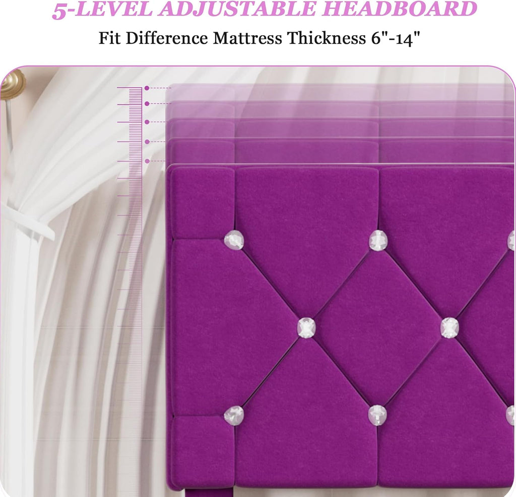 • Twin Platform Bed Frame with Adjustable Velvet Headboard: This bed frame is designed for a twin-size mattress and features an adjustable velvet headboard with diamond and tufted details, offering a touch of elegance to your bedroom decor.