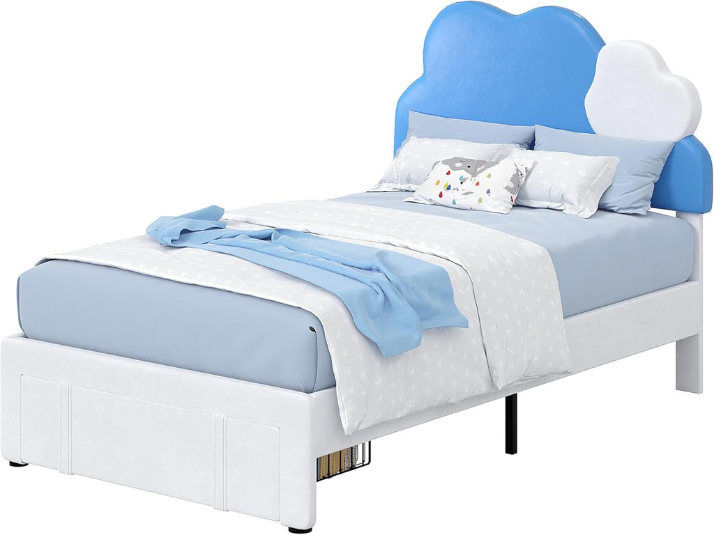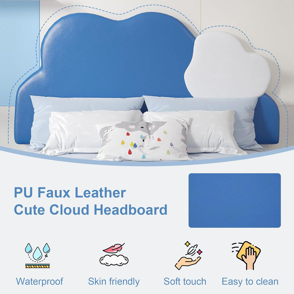 • 【Perfect Twin Bed for Boys & Girls】Twin bed frame is designed with a cute cloud-shaped headboard, adding an innocent and fun atmosphere to the bedroom. The smooth corner design ensures that kids won't get hurt when using it, and the PU leather material is easy to clean and more reliable.