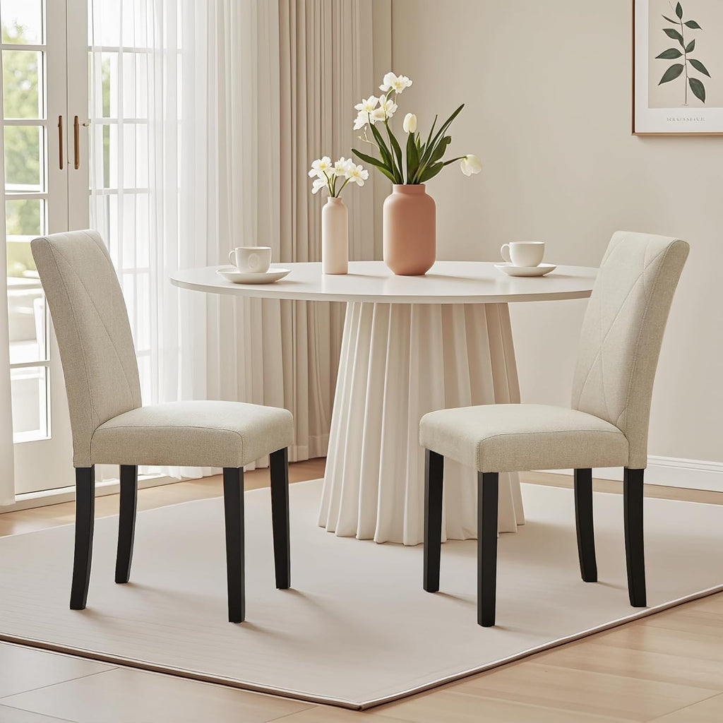 • [Durable Linen Fabric Kitchen Chairs]: The wood kitchen dining chairs are designed with heavy-duty solid wood legs for optimum support to guarantee solidity and durability, that can hold up to 260 lbs. Non-slip foot pads of the dinning chair protect the floor from being scratched.Dining chairs are upholstered with soft linen fabric, which is breathable and easy to clean.