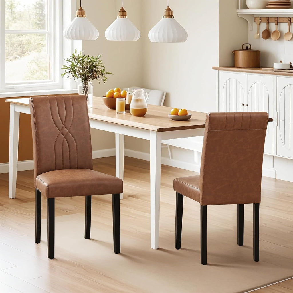 • [Modern Style Dining Chairs]: This set of stylish dining chairs with modern design and in unique style make it blend seamlessly with any home decor. These beautifully upholstered chairs create a warm, elegant atmosphere for the dining room.