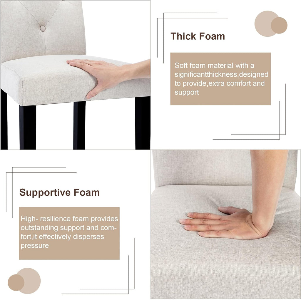 • [Durable Linen Fabric Kitchen Chairs]: The wood kitchen dining chairs are designed with heavy-duty solid wood legs for optimum support to guarantee solidity and durability, that can hold up to 260 lbs. Non-slip foot pads of the dinning chair protect the floor from being scratched.Dining chairs are upholstered with soft linen fabric, which is breathable and easy to clean