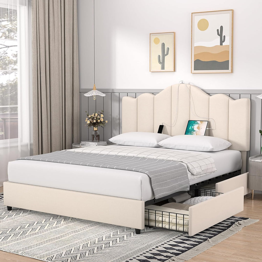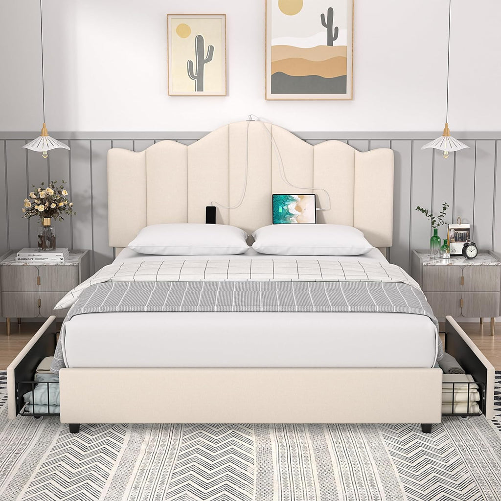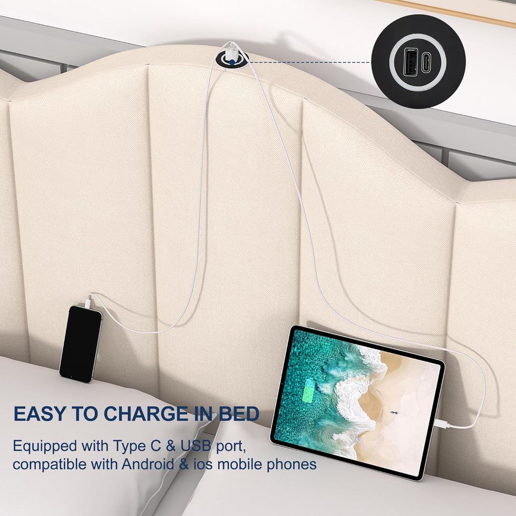 • [Type-C & USB Charging Ports]-- The full bed is built-in Type-C and USB ports (compatible with Android and iPhone) to keep your electronics charged nearby easier than ever as you sleep; morning and evening routines just got a lot simpler.