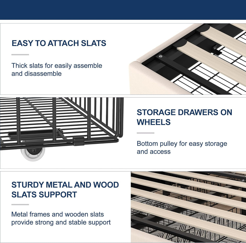 • [No Box Spring Needed]--Sturdy wooden slats allow for better support and less sagging for mattresses. Mattress slats are made of sturdy hardwood to support life of mattress and ensure durability and support. Mattress can be put on the slats directly, you can save more money and time!