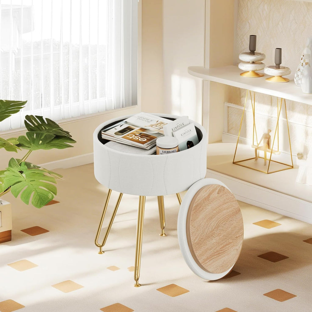 • Hidden Storage: The vanity seat is equipped with a hidden storage compartment, offering around 10 liters of space. This small vanity chair is ideal for tucking away cosmetics, trinkets, books, and magazines, ensuring your dressing area remains pristine and your space is maximized.
