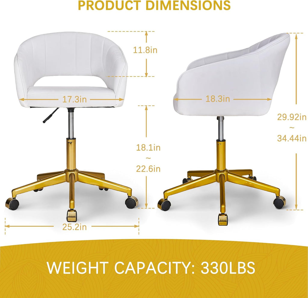 • 【Modern Stylish Design】The combination of unique pearl white velvet fabric and golden 5-leg base adds more stylish elements to this velvet chair. Extra large embraced-backrest with exquisite velvet, makes this luxury velvet chair for vanity more comfort, style and durability, not only a chic look, but also enrich your modern and urban seating experienc.