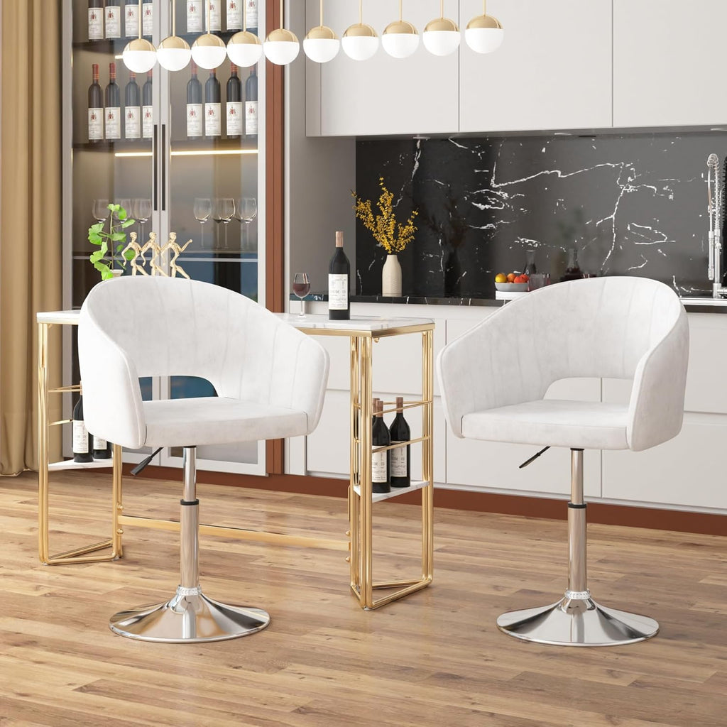 • 【360°Swivel and Adjustable Height】: VECELO velvet bar chair's adjustable height is between 24.4"-32.3", fitting counters height from 35"-47",and the velvet vanity stools seats rotates 360°quietly to match all people of different heights. You can also easily access items and sit in a comfortable position all the time.