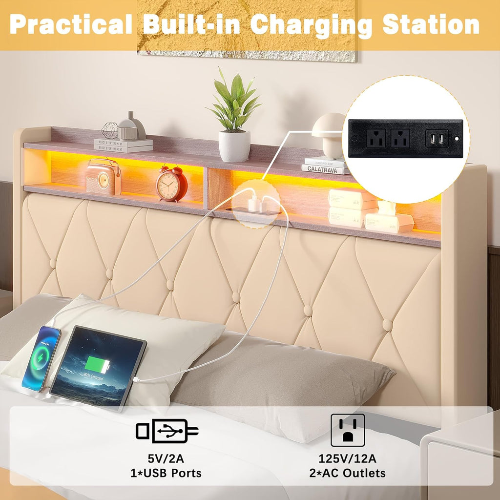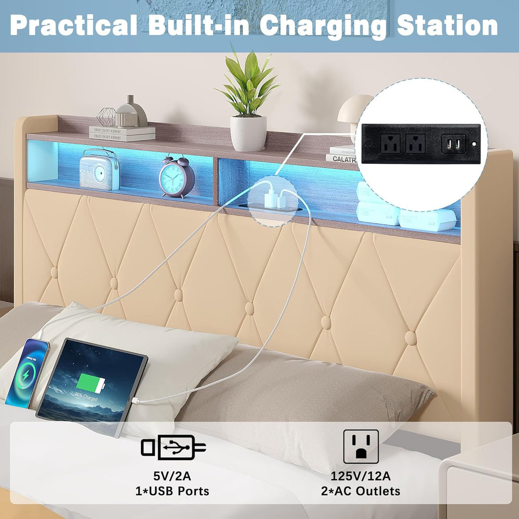 • Stay Powered Up: This bed frames queen is built with a charging station, 2 power outlets and 2 USB ports, allow to keep your tablets, phones, or other electronics powered up